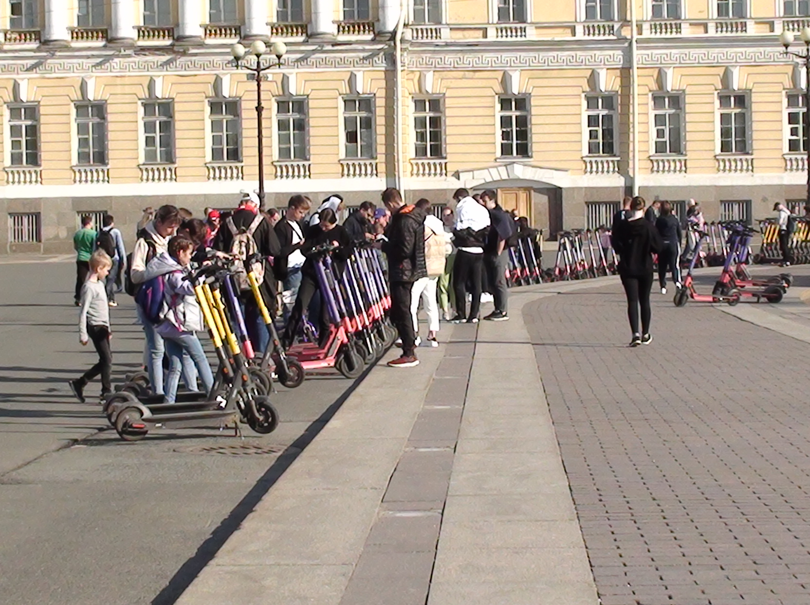 В данной теме предлагаю обсуждать особенности кикшеринга (как правило, электросамокаты). Сам таковой не юзаю, но наблюдаю, насколько большие обороты он набирает. В некоторых местах можно увидеть до 200 электросамокатов разных операторов кикшеринга. Самое большое их сборище — Дворцовая площадь. Сотни свободных самокатов и только на Дворцовой в тёплый день можно увидеть их десятки.
