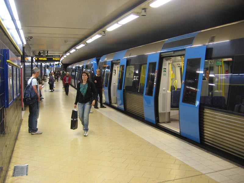 Недавно был в Стокгольме и, естественно, кроме осмотра достопримечательностей, прокатился в метро (или Tunnelbanan). Вот маленький фотоотчет. Из особенностей метро можно выделить, что поезда прибывают в основном к левой стороне платформы, а не к правой, как у нас.