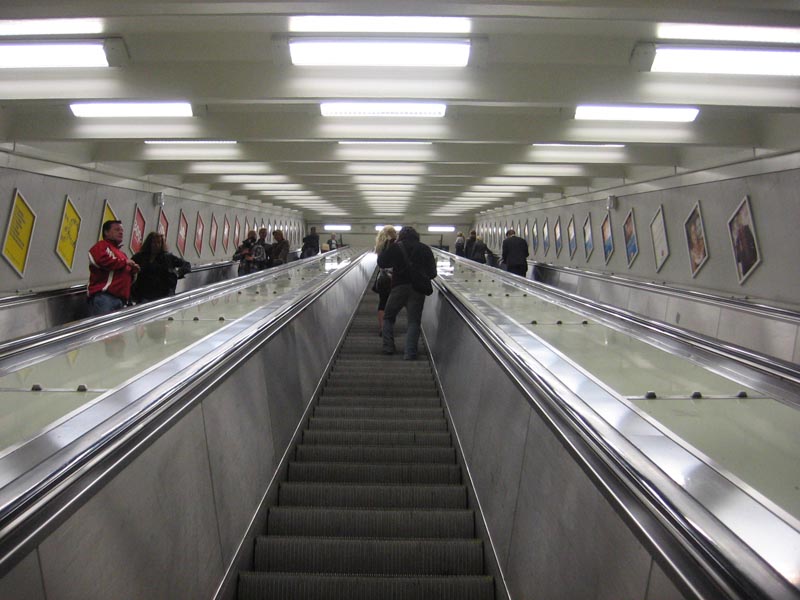 Обратите внимание, как висит реклама. В Москве она висит параллельно эскалатору