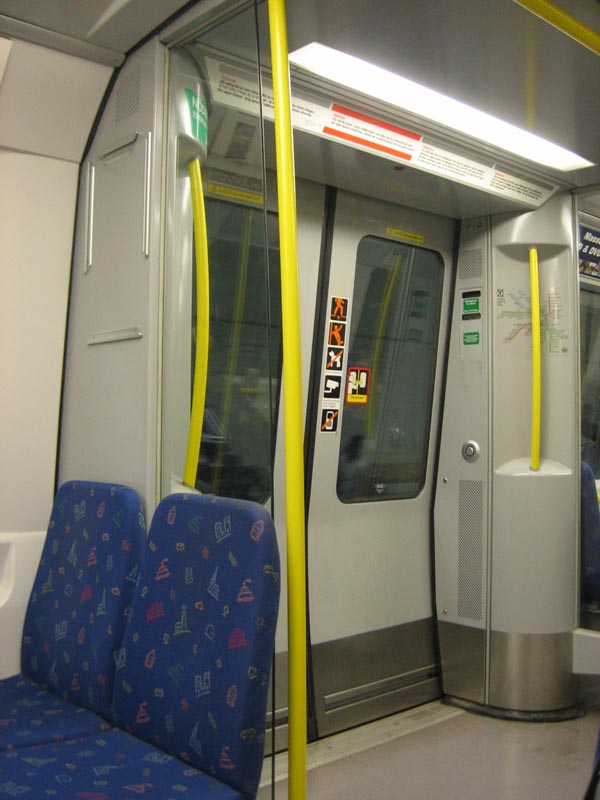 Двери вагона изнутри. Схема отражает только три подземные линии, а не всю сеть, которую рисуют на картах города.