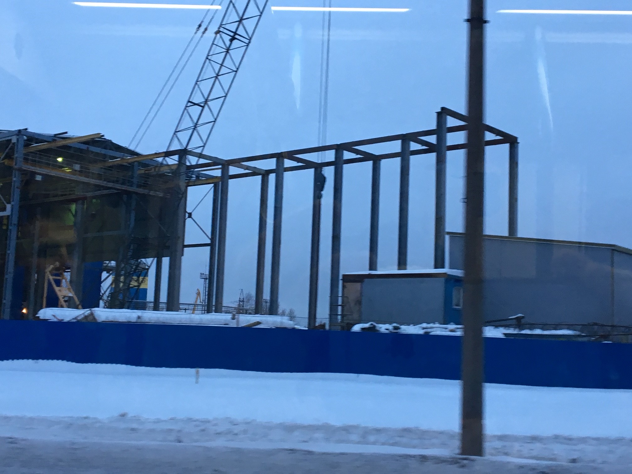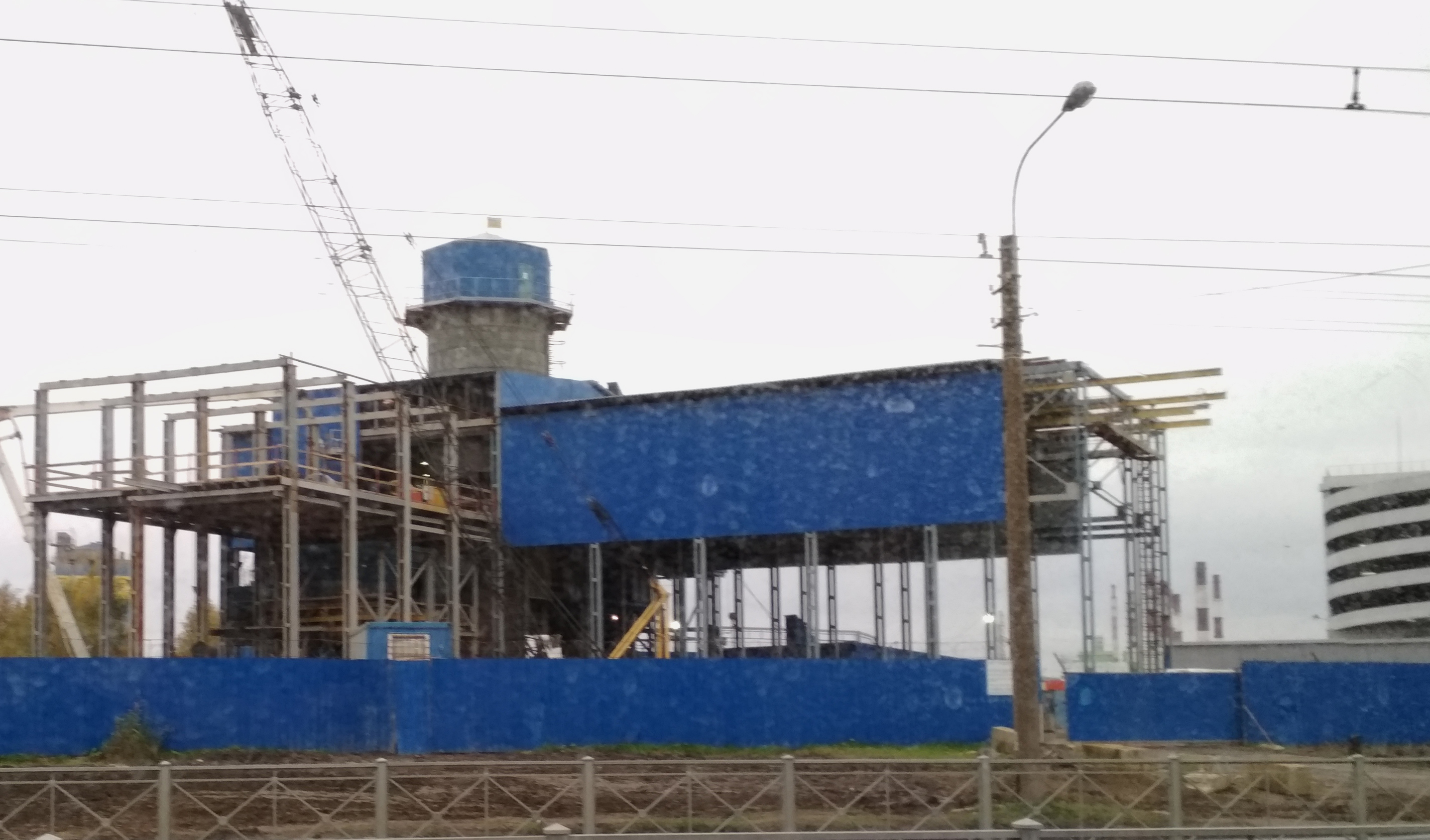 Не сильно много изменилось сверху, справа монтируют какое то строение из серых сендвич панелий, но не очень хорошо видно на снимке. Сфотографировал из автобуса.