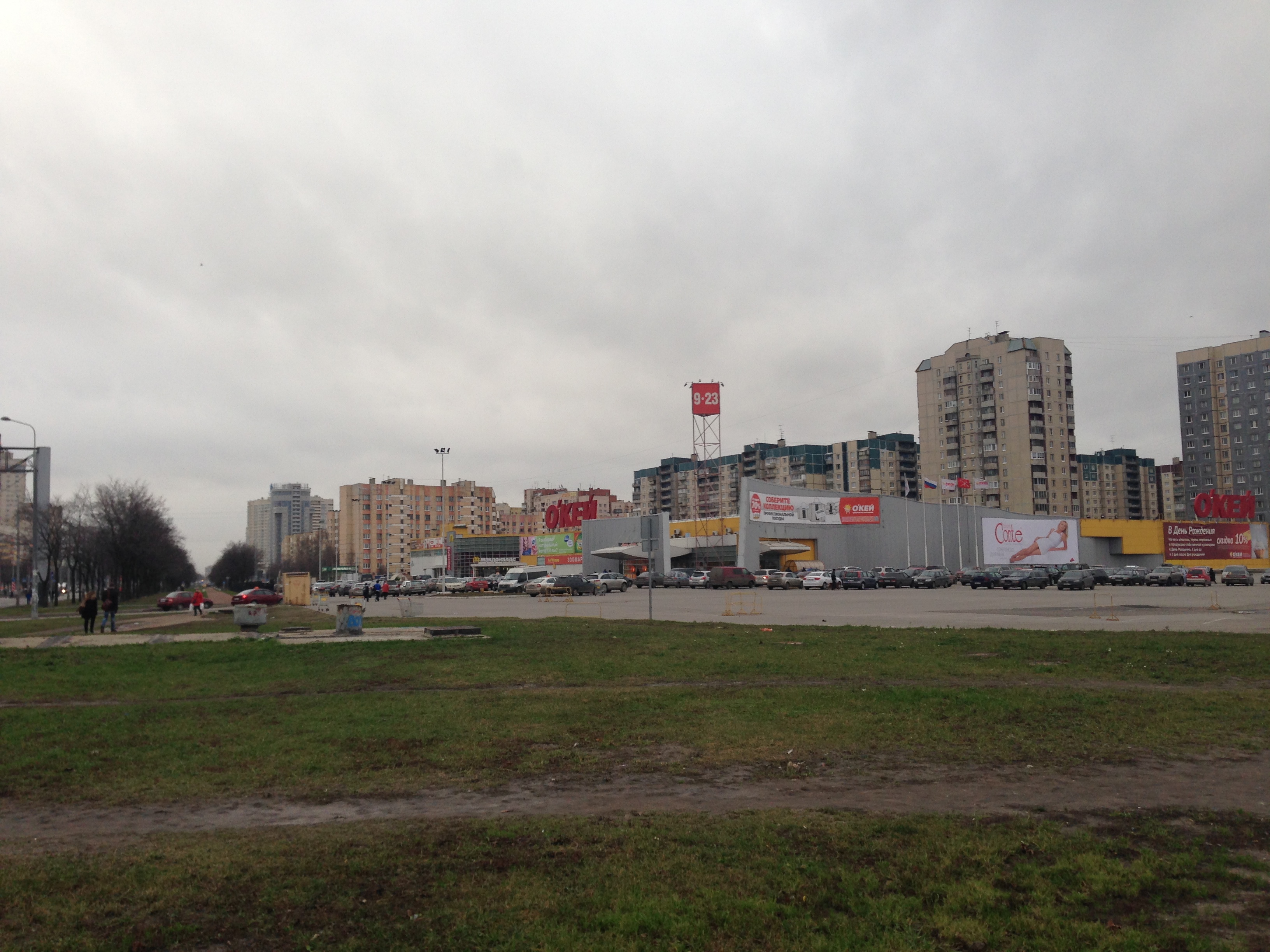 Конкретно: напротив гипермаркета известной марки (дабы не рекламировать).