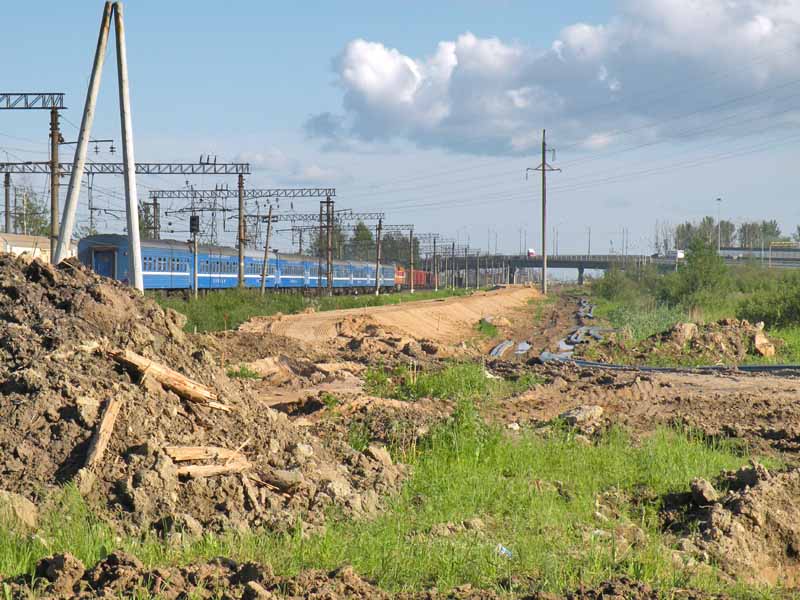 Мы в Купчино, в полосе, смотрим на север. Здесь будет вокзал.