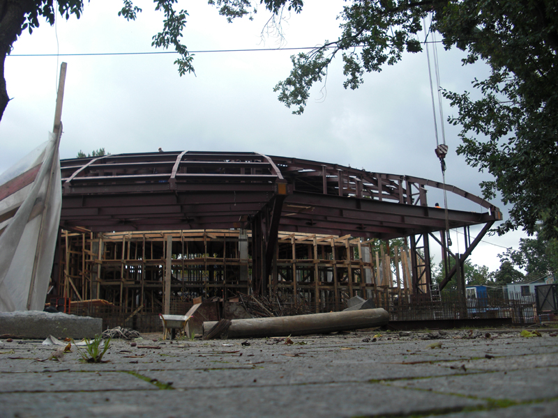 Я не понимаю логики в том, чтобы оставить старое центральное основание, чтобы потом всё туда втиснуть (а судя по очертаниям каркаса так и будет). А кто-то громче всех кричал, что делают для того, чтобы больше пространства охватить (кассы, турникеты и пр.). Одно только радует, что на сей рад будет обычный (не встроенный в торгово-офисную коробку над головой) вестибюль.