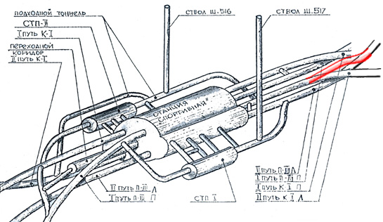 ...Намечено строительство предложенной конструкции на станции «Спортивная», в месте пересечения участка строящейся линии Ленинградского метрополитена («Площадь Мира» — «Богатырский проспект») с будущим Северным полукольцом.