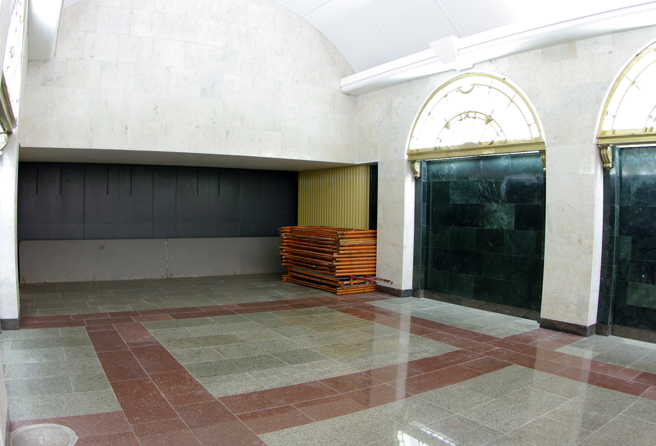 Вестибюль станции: идет подготовка к установке турникетов и огромное количество других работ, все как в муравейнике :) Сфотографировать пытался, чтобы попало в кадр меньше рабочих..