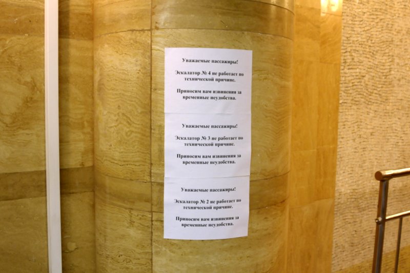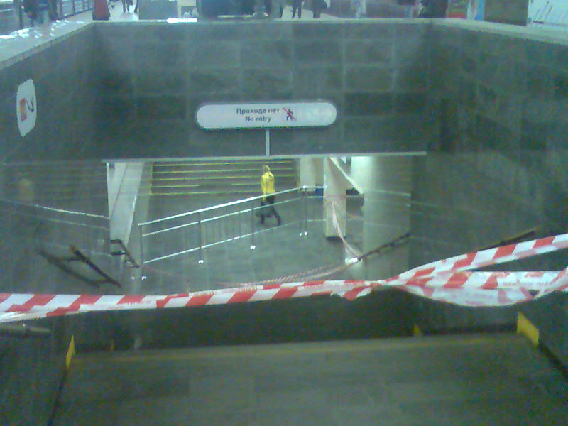 - На фото почти не видно, но у крайнего экскалатора снята гребёнка и несколько ступеней.