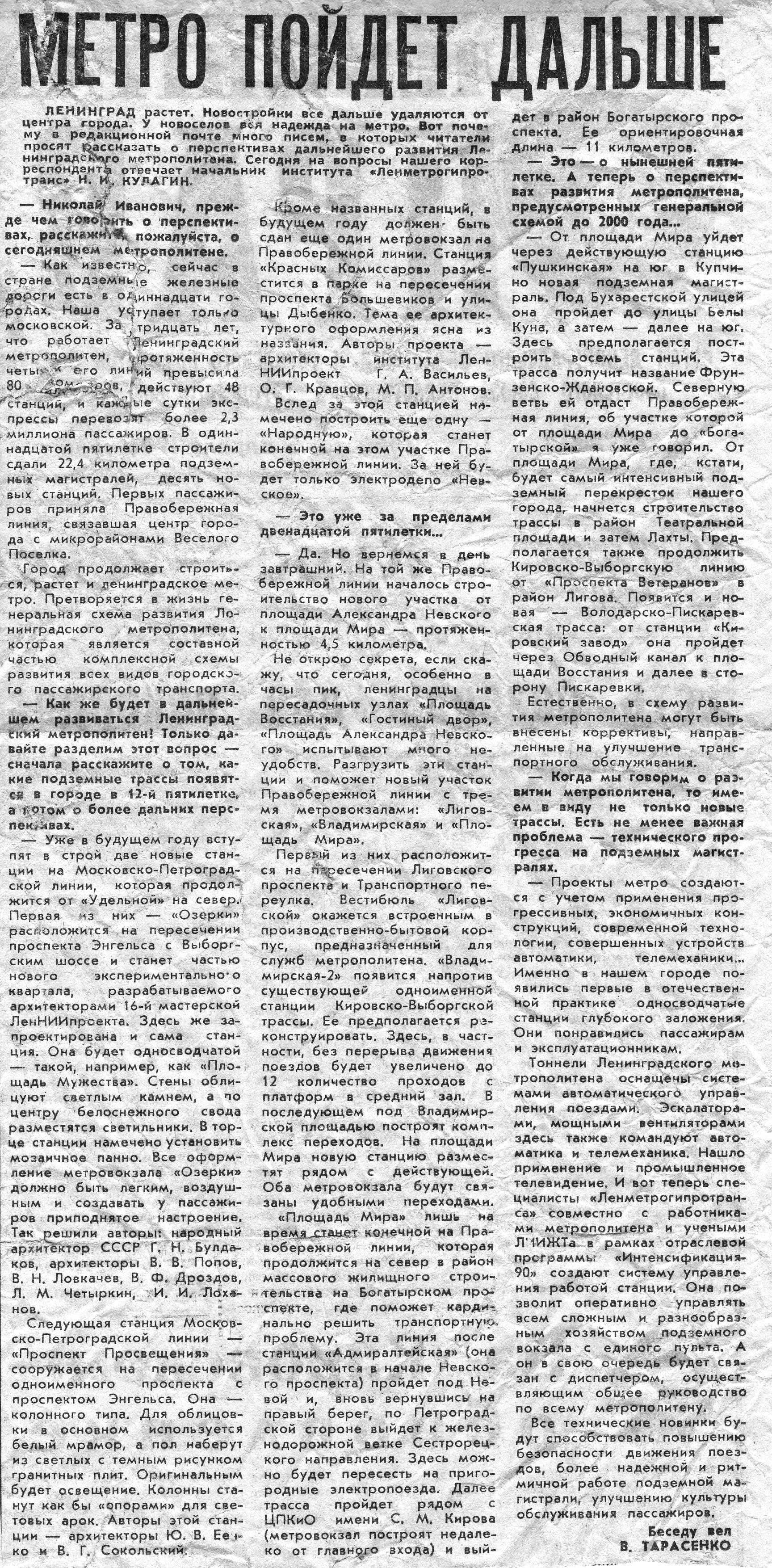 Обратите внимание на такой момент: во второй статье написано, что "Народную" построят на углу Товарищеского и Народной. Видимо, хотели продлевать Товарищеский... а также станцию "Дыбенко" хотели назвать "Красных комиссаров" (третья статья).