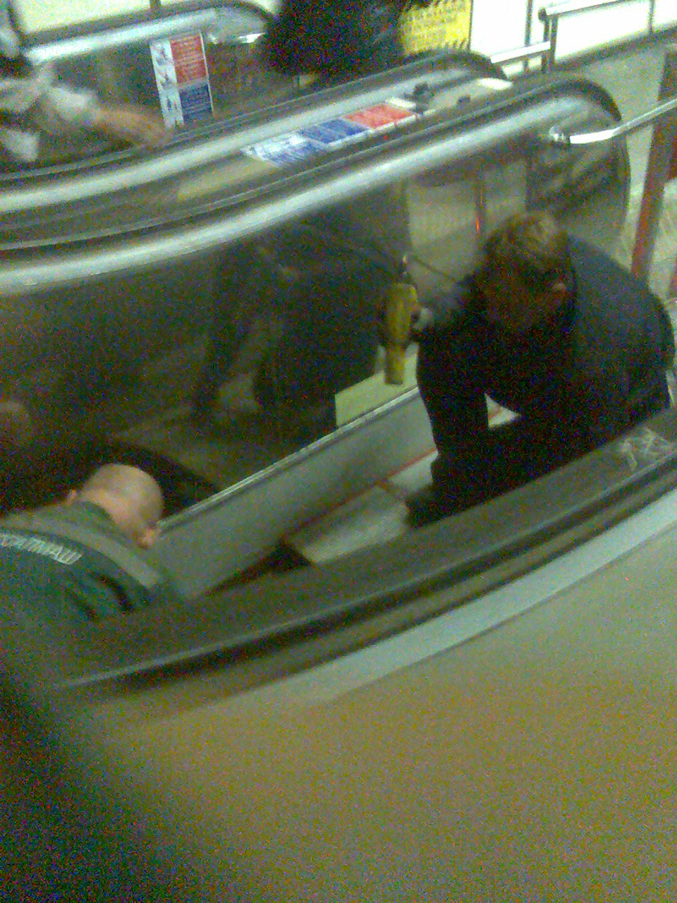 в 10 утра наблюдал 3 работников уневерсалмаша вглядваювающихся в мехнизм экскалатора двигающегося с ремонтной скоростью.
