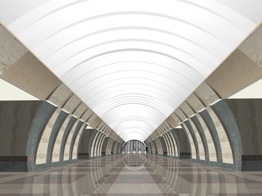 Эх, а могло бы быть еще красивее: на Марьиной Роще изначально планировался другой рисунок пола и в тон ему пояс из коричневого мрамора на пилонах. Но тем не менее, окончательный вариант тоже радует.