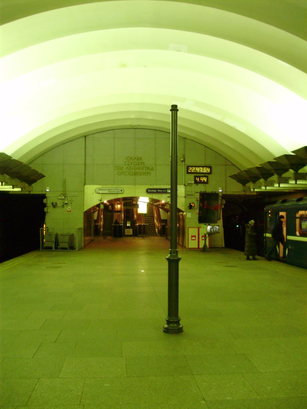 Дело не в том, что что-то лучше "нам", а прежде всего в том, что 3 столба на односвод - идиотизм даже при самом лучшем отношении к НИПу. Судите сами: указатели расположены перпендикулярно оси станции. Следовательно, увидеть их пассажир, вышедший из поезда, может, только если он уже направиться в сторону эскалаторов (на станции с одним выходом, конечно. Но большинство питерских односводов таковы). Но если он уже направился в ту сторону - на кой чёрт ему указатели на выход? А если он паче чаяния пойдёт в противоположную сторону - так указатели ему ничем не помогут, ибо на них он увидет только пресловутые конечные станции на линии. Ну, и, наконец, если он будет метаться взад-вперёд, крутя головой и натыкаясь на других пассажиров - то, конечно, указатели ему в конце концов помогут, но, помилуйте, как же можно говорить в таком случае о ИП всерьёз? Что же касается пассажиров, спустившихся на станцию - так эти на пути к третьему столбу уже минуют два. Ежели им это не помогло - так и третий не поможет. Строго говоря, и второй столб абсолютно излишен (ещё раз повторю, на односводах с одним выходом и при ориентации указателей поперёк оси станции).