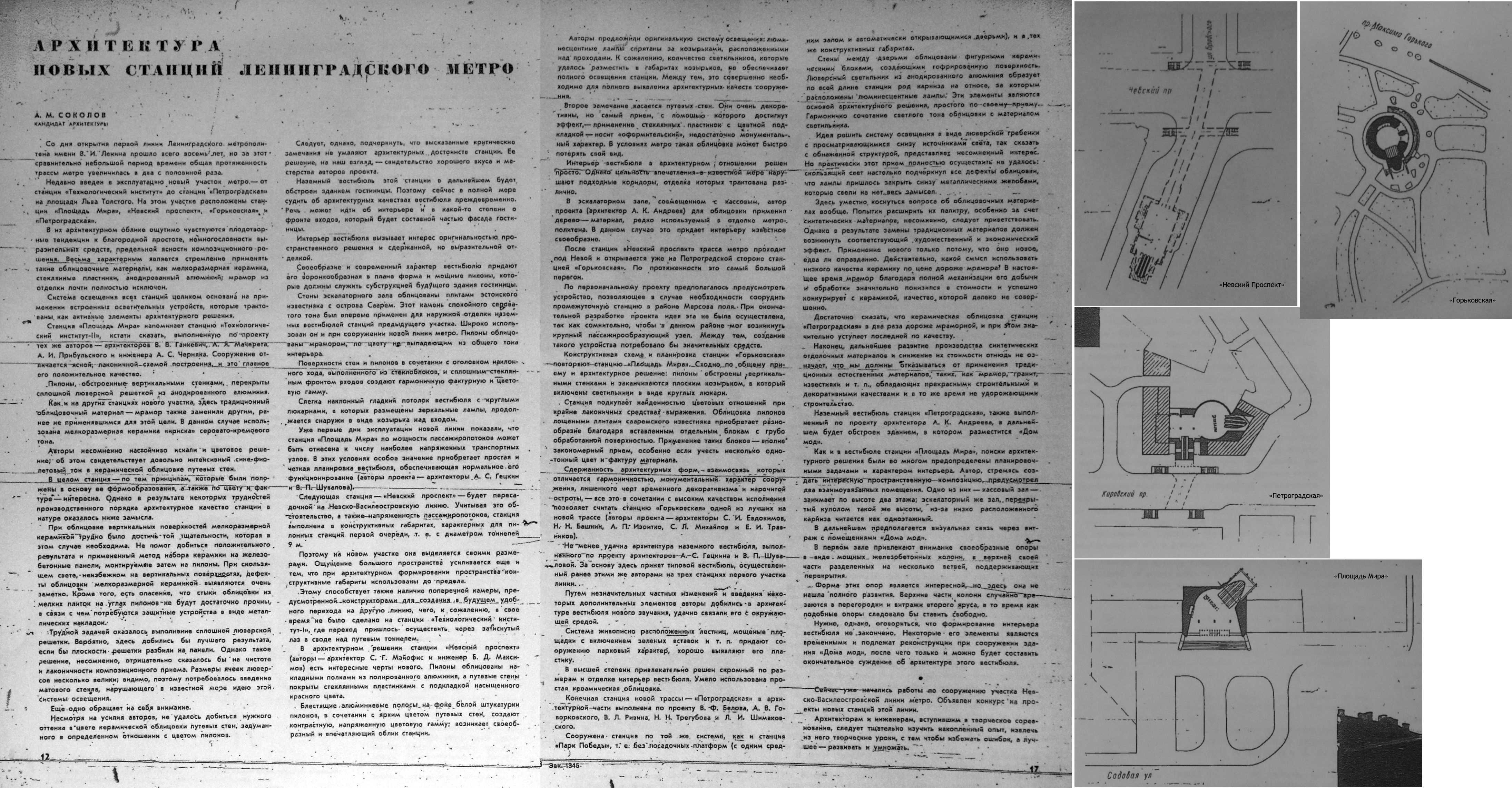 Отсканировал иллюстрации к статьям, выложенным в предыдущем сообщении ("Новый участок Ленинградского метрополитена" / Строительство и архитектура Ленинграда №5, 1961 и "Архитектурный облик новых станций метро" / Строительство и архитектура Ленинграда №7, 1961) в более лучшем качестве: