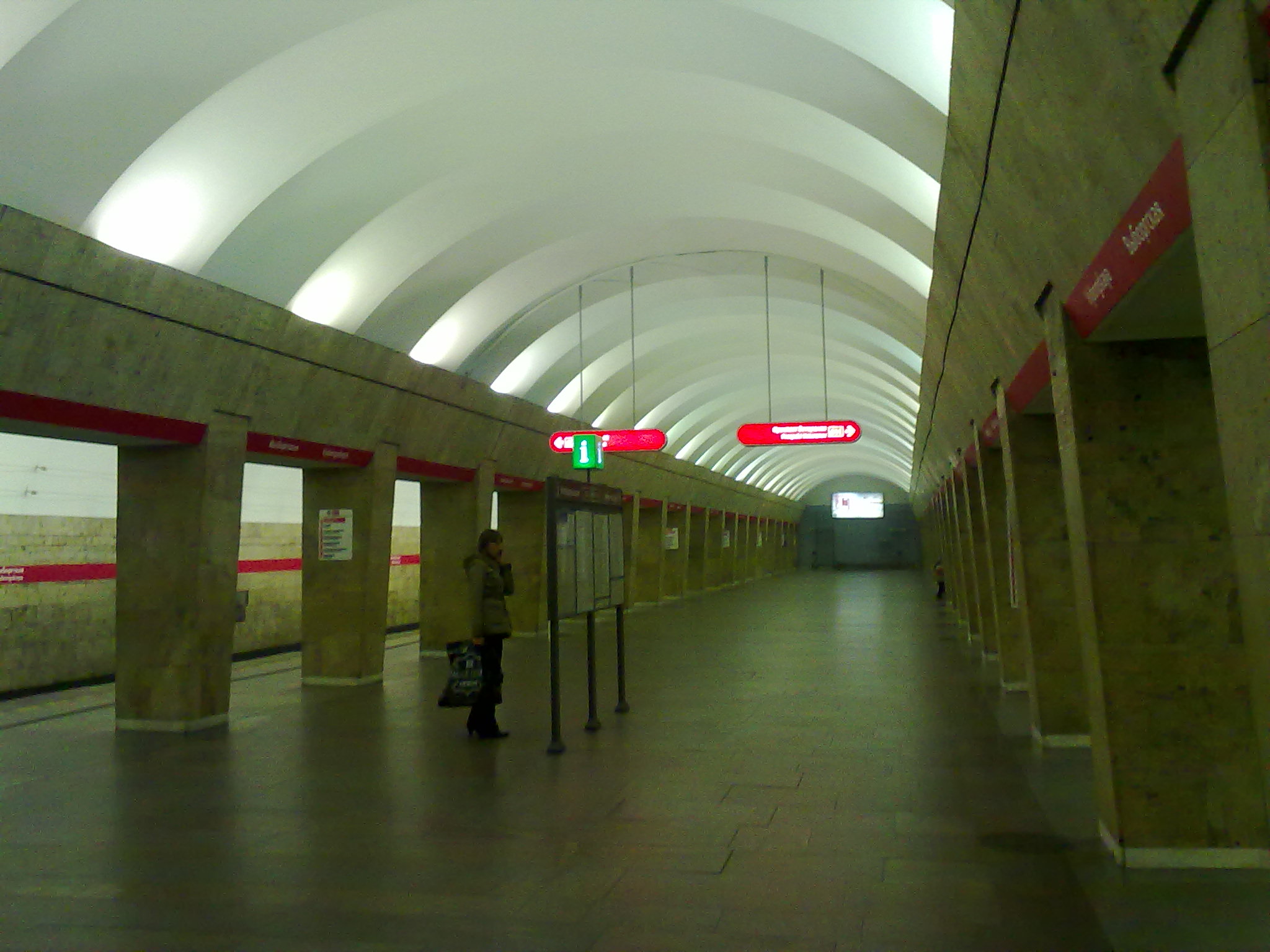 Не согласен. Вездесущие красные пятна в количестве как-то не ассоциируются у меня с "живым". Да и их вопиющая бессмысленность (прежде всего полосы в ЦЗ) несколько выбивает из колеи. Другой вопрос, что станция была достаточно запущена - и рекламные щиты (гнёзда под которые, впрочем, никуда не делись), и вечно пыльный травертин. В этом смысле, конечно, м.б., и можно говорить о "не испортил" - ежели подразумевать, что портить было особо и нечего. Но это уже - дело вкуса.