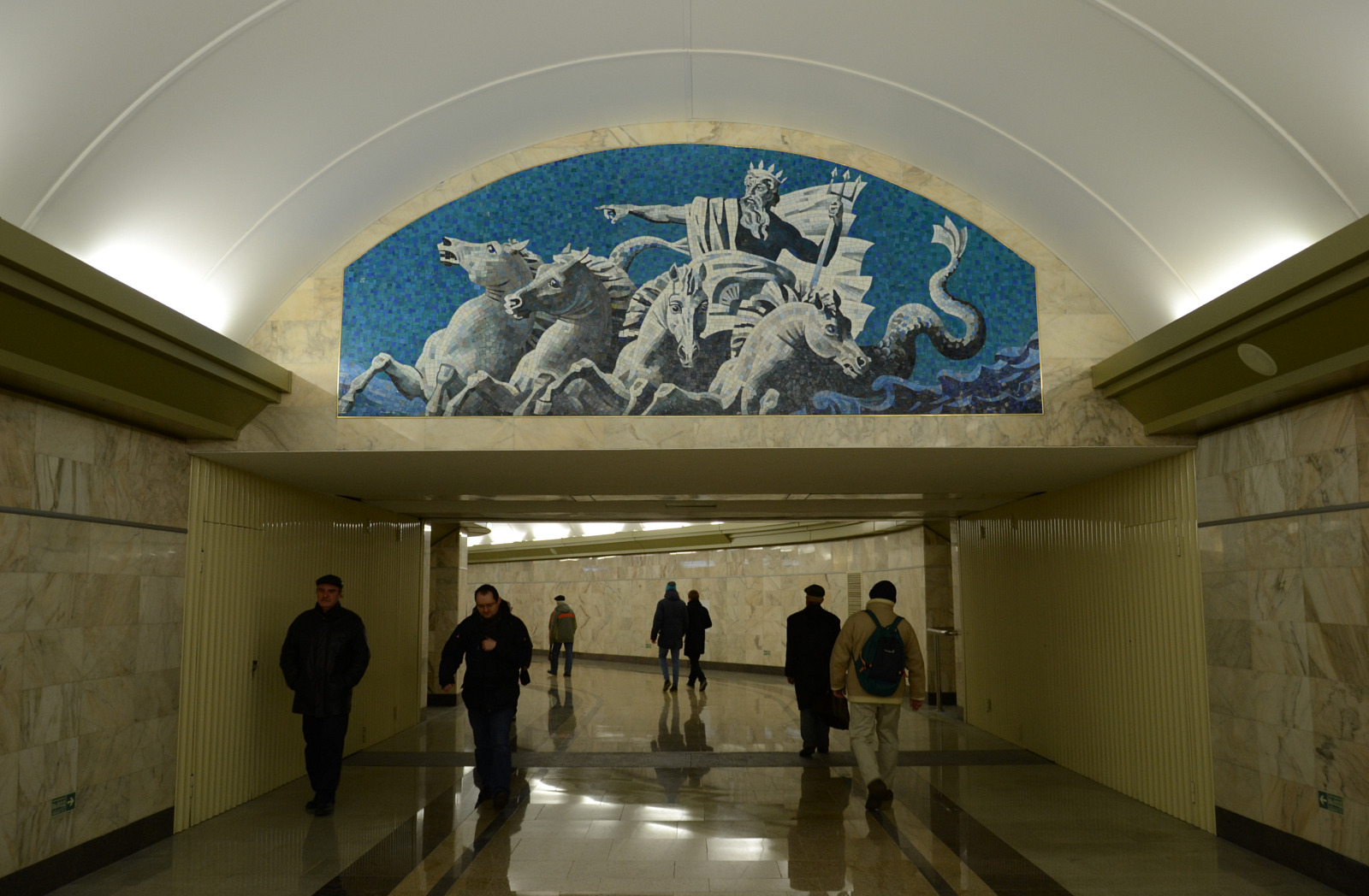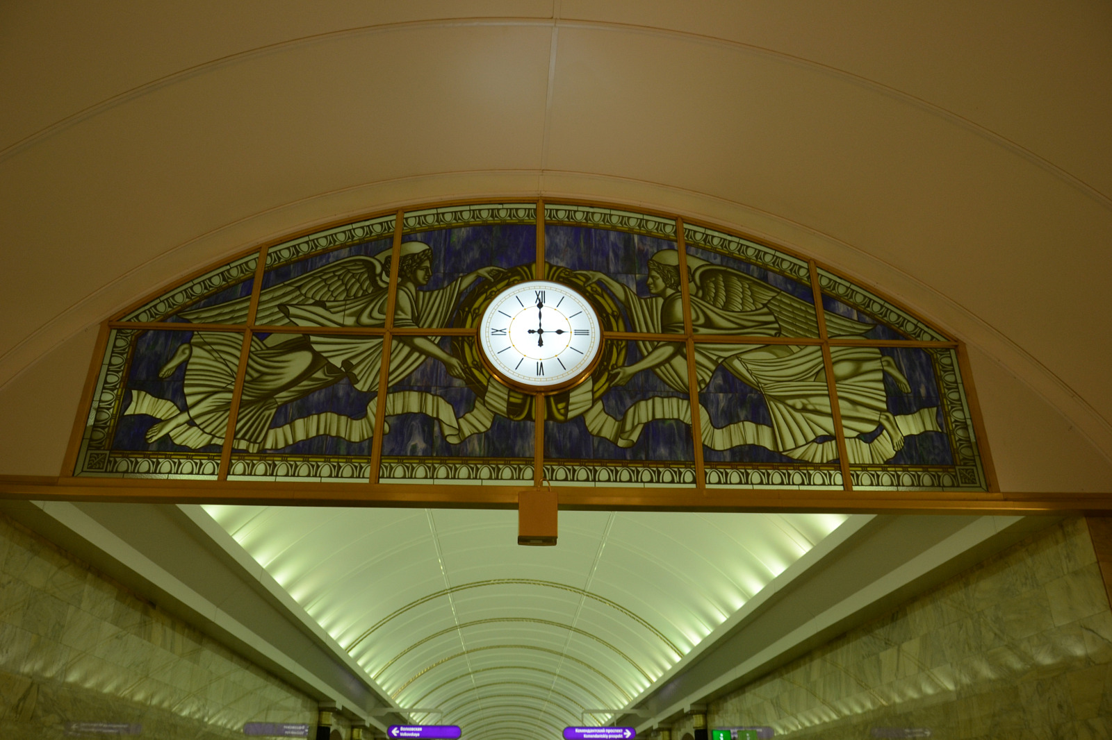 Помимо уже всех перечисленных достоинств, понравилось, что в вестибюле "аквариум" находится в нише, а не занимает половину полезной площади. Не понравилось, что в переходном коридоре плитка на стенах уложена с использованием металлического "порога", причем в том месте, где коридор поворачивает от панно с Невой к большим эскалаторам, этой металлической полоски нет. Как будто начали делать нормально, а потом терпения не хватило. Ну и два ушлепка, выплевывающих жвачки на платформу, вызвали острый приступ мизантропии :(