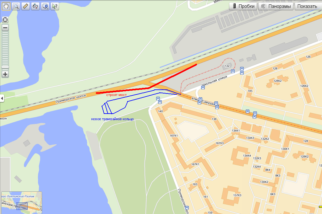 Насчёт Приморского - мне кажется, что любое кольцо должно иметь выезды в обе стороны. И если ближе к Старой Деревне произошла авария, чтобы можно было оборачивать трамваи, пришедшие с Лахты. Сейчас это путевое развитие выдрали, хотя оно никому не мешало.