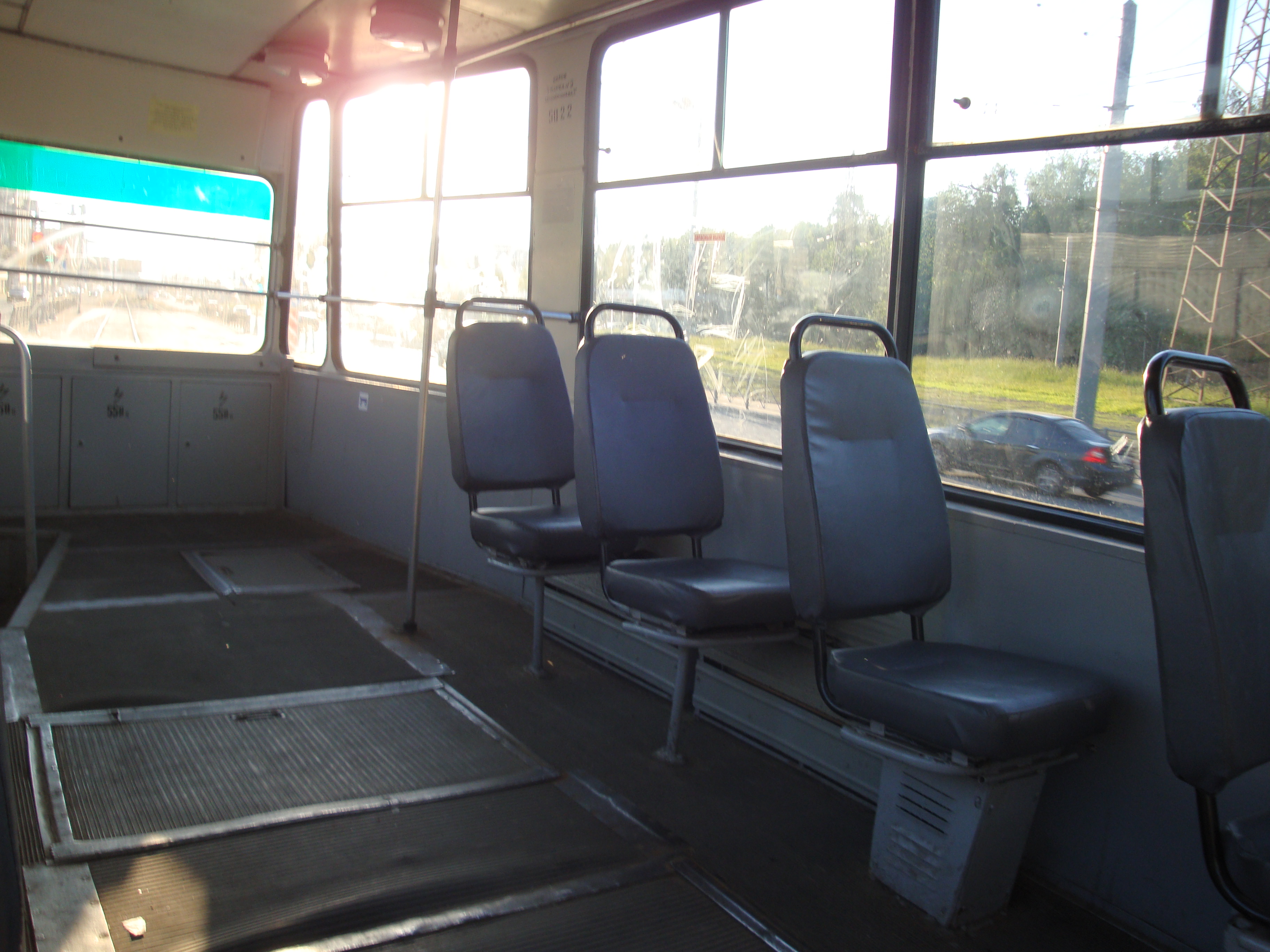 Салон, конечно, уже смотрится очень старым, но порадовало наличие удобных кресел с отделкой "под кожу" (видимо, я ехал в модернизированном вагоне, т.к. "родные" сидения можно увидеть на моем фото ЛМ-68М). Очень мягкие сидения.