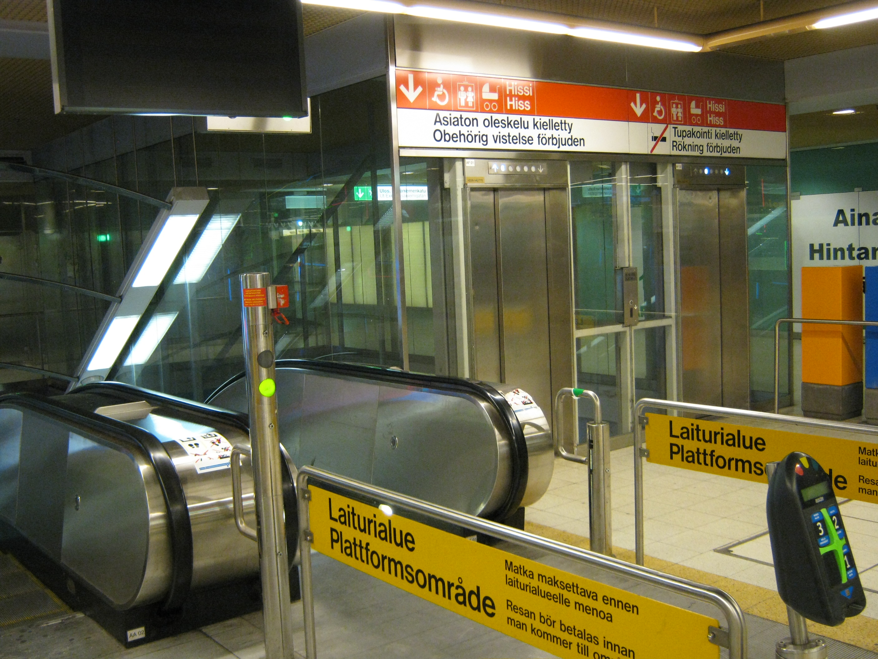 В метро Хельсинки нет таких пассажиропотоков как у нас, поэтому они могут такое себе позволить. У нас в Питере станций с малым пассажиропотоком и 4 экскалаторами по пальцам пересчитать.