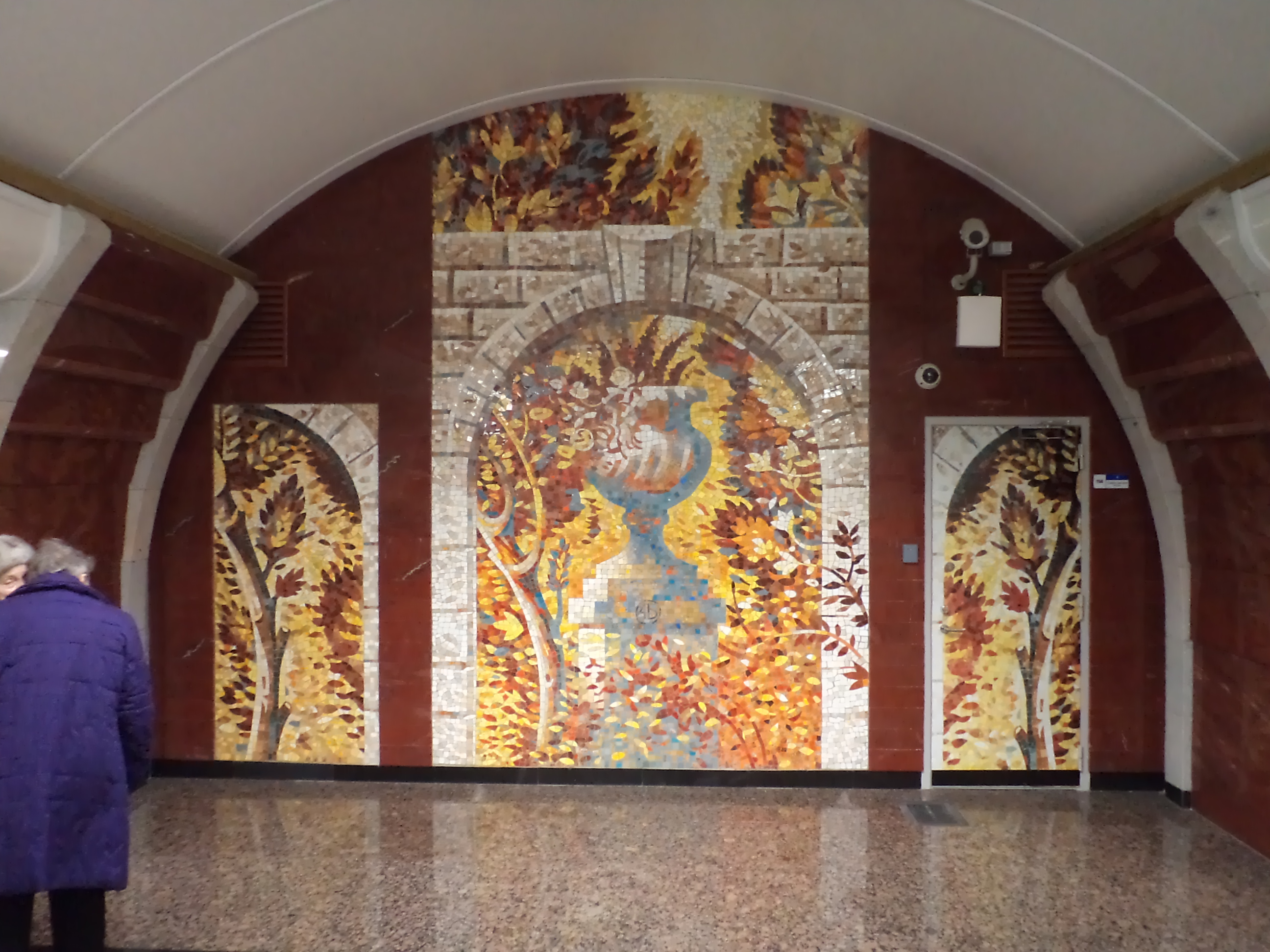 Международная тоже неплоха, но мозаики уж больно кричащие - синий цвет (особенно в таком количестве) не совсем сочетается с общим стилем станции.