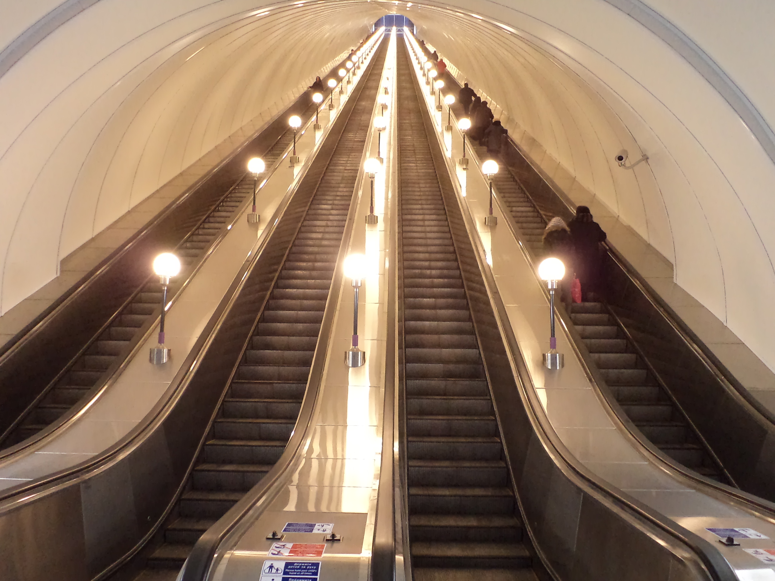 На эскалаторах - занятные светильники. Единственное, что оживляет вполне себе скучные технологичные наклонные ходы.