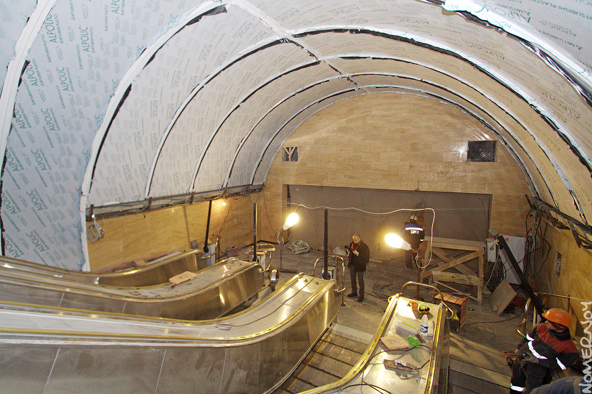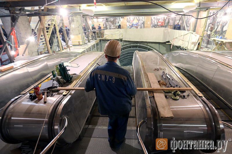 Завершаются работы по строительству наземного вестибюля станции метро "Спасская". Первые пассажиры должны появиться здесь 7 ноября. На настоящий момент станция готова на 85% - осталось доделать облицовку и проверить эскалаторы. Стены украсят мозаичные панно с картинами быта Сенной площади. "Фонтанка" заметила в торговых рядах Пушкина, Толстого и Гоголя.