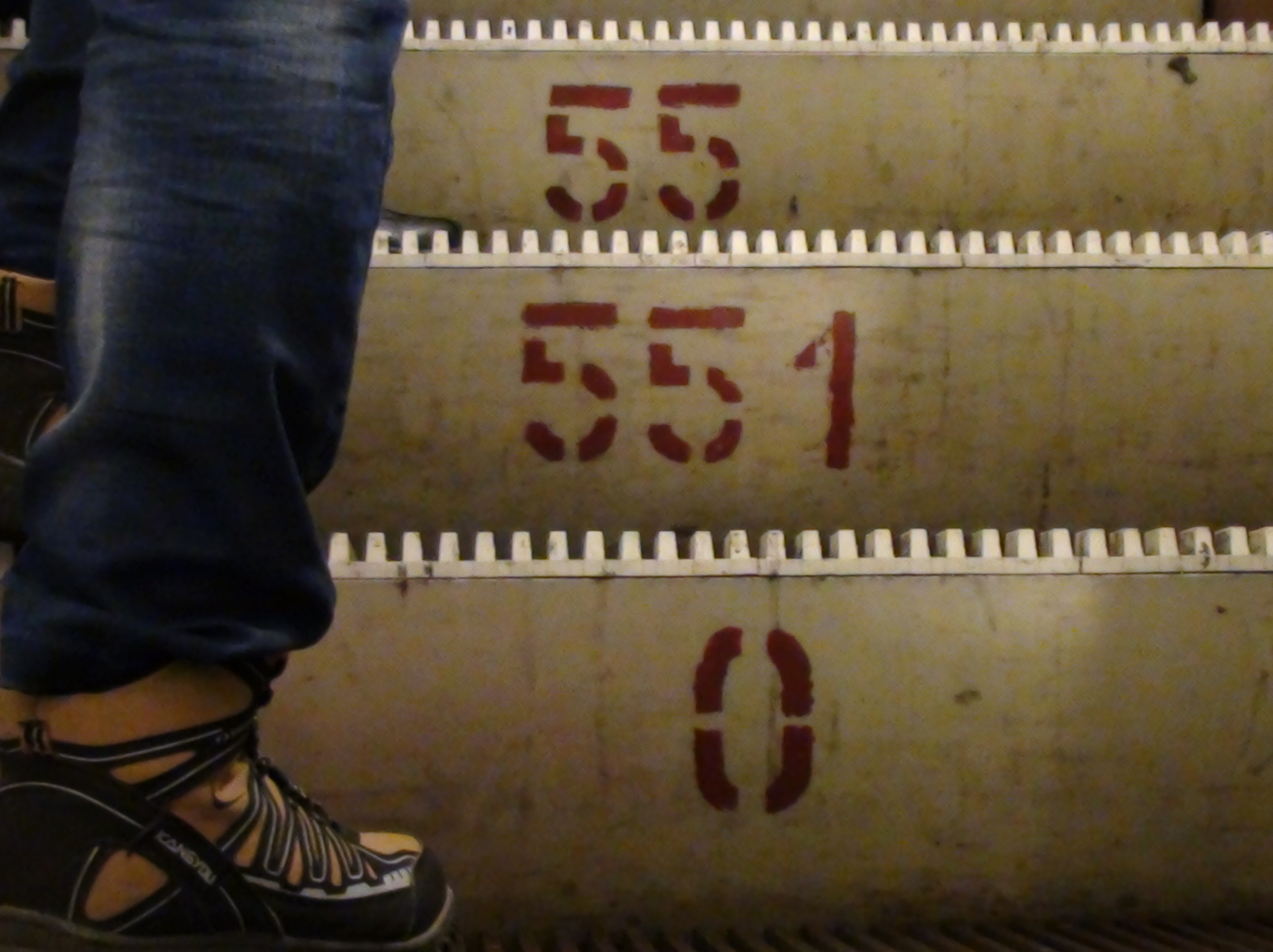 На одной и той же станции число ступеней в эскалаторах разное (на крайних эскалаторах их меньше, чем на средних). А по фото невозможно определить, какой это эскалатор.