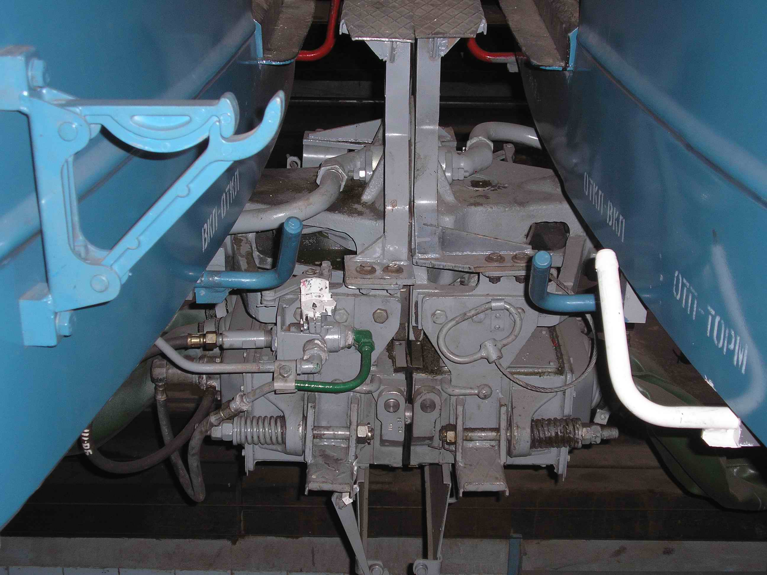 Вот наша автосцепка. Сама автосцепка скользит по балке, высота над УГР регулируется вращением стаканов. Сложноватое устройство для железной дороги.