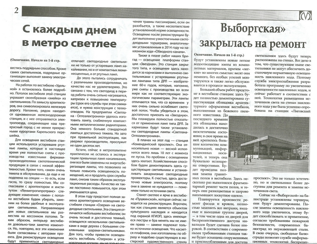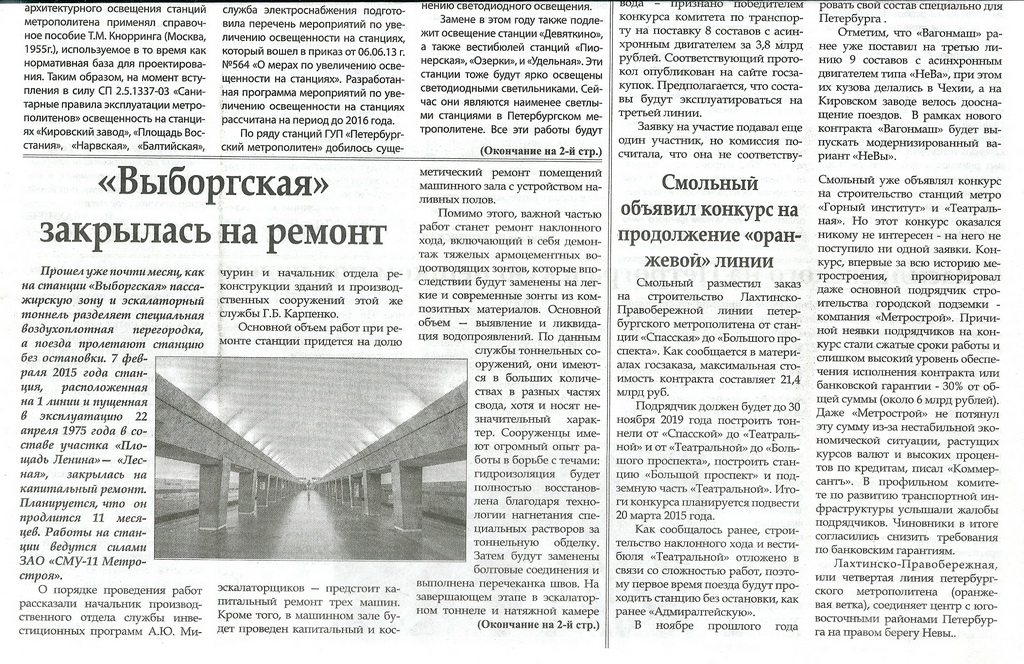 Далее, цитаты из другой статьи про ремонт "Выборгской":