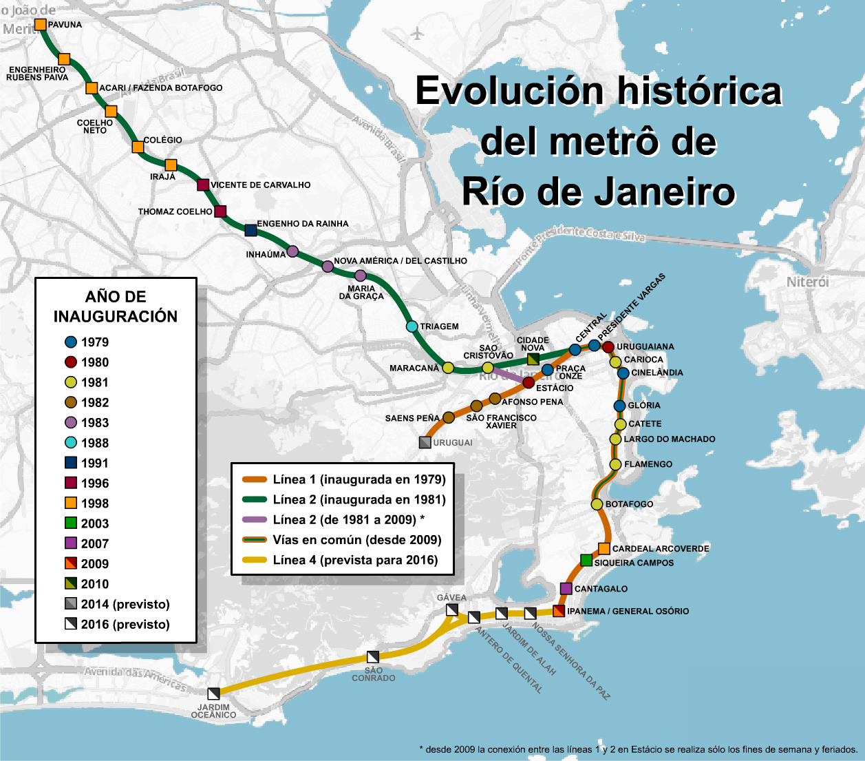 Власти штата Рио-де-Жанейро особо выделяют проект линии 3 метрополитена длиной 28 км, которая пройдет из центра города под дном залива Гуанабара в Нитерой и Сан-Гонсало. Из-за больших затрат на эти работы приоритет отдается строительству участка Нитерой —Сан-Гонсало, который будет обслуживать пригородные районы с высокой плотностью населения. Тем временем паромное сообщение между Рио-де-Жанейро и Нитероем будет усилено новыми судами-катамаранами.