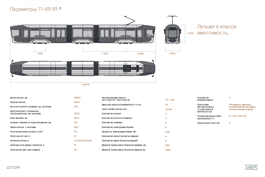 А на основе "старого" R1 предлагают R1 Aero — догадайтесь, для чего? Для связи города с аэропортом. 45-метровый двухкабинный вагон всего с 4 дверями на борт. Не могу понять, как выдернуть картинку из pdf.