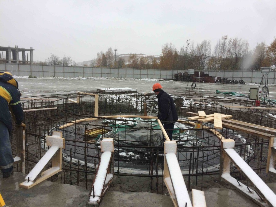 – Сейчас ведутся работы по сооружению основных конструкций здания подъемной машины и фундаментов горного комплекса, – говорит начальник участка Никита Валерианович Голубев.