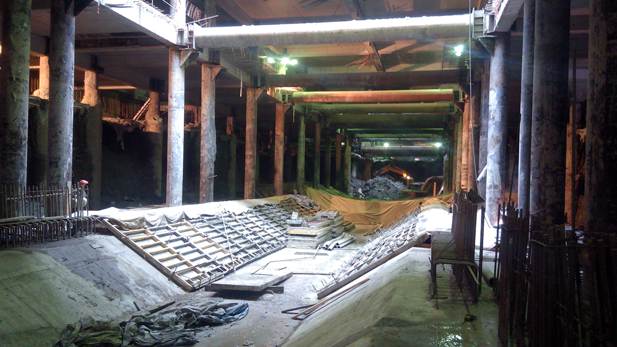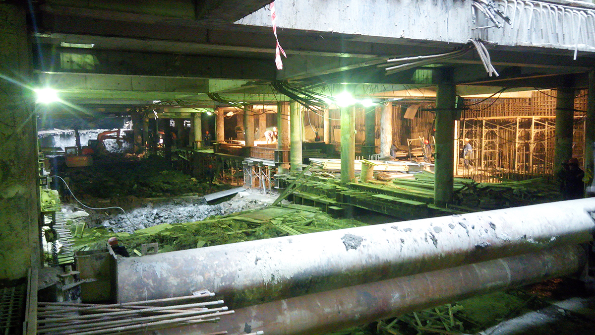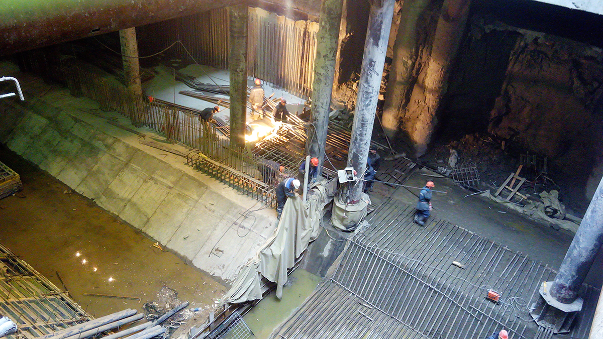 Главная проблема нашей площадки другая: от заказчика нет рабочих чертежей на целый ряд работ. По всему станционному котловану до сих пор нет рабочей документации на основание: ни днища, ни стен, ни перекрытия. Работаем по сигнальным чертежам. Это продолжается буквально с самого начала строительства и очень затрудняет комплектацию заявок на стройматериалы.