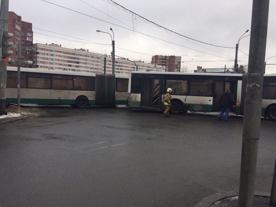 На перекрёстке проспектов Стачек и Трамвайного столкнулись два рейсовых автобуса — № 200 и 300. (Столкновение 5329 и 5250).