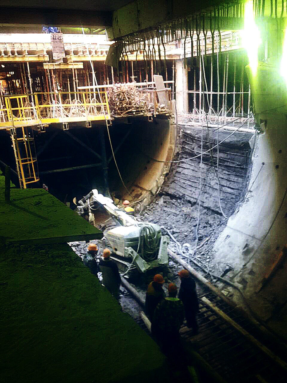 Но зато строители не ждут и делают перекрытие между нижним и средним ярусами. Возможно это дает некоторое распараллеливание. По фоткам видно что снимают верхушку тоннеля, делают перекрытие (используя основание тоннеля как жесткую поверхность для подпорок) и затем демонтируют остальные блоки.