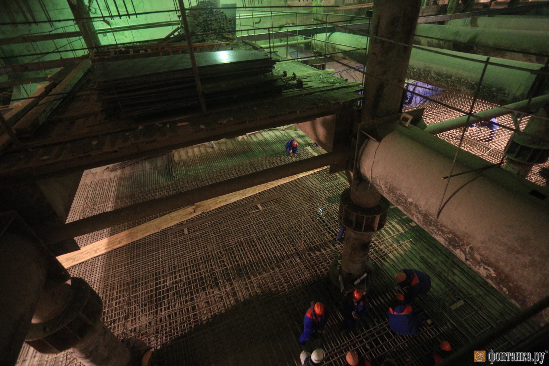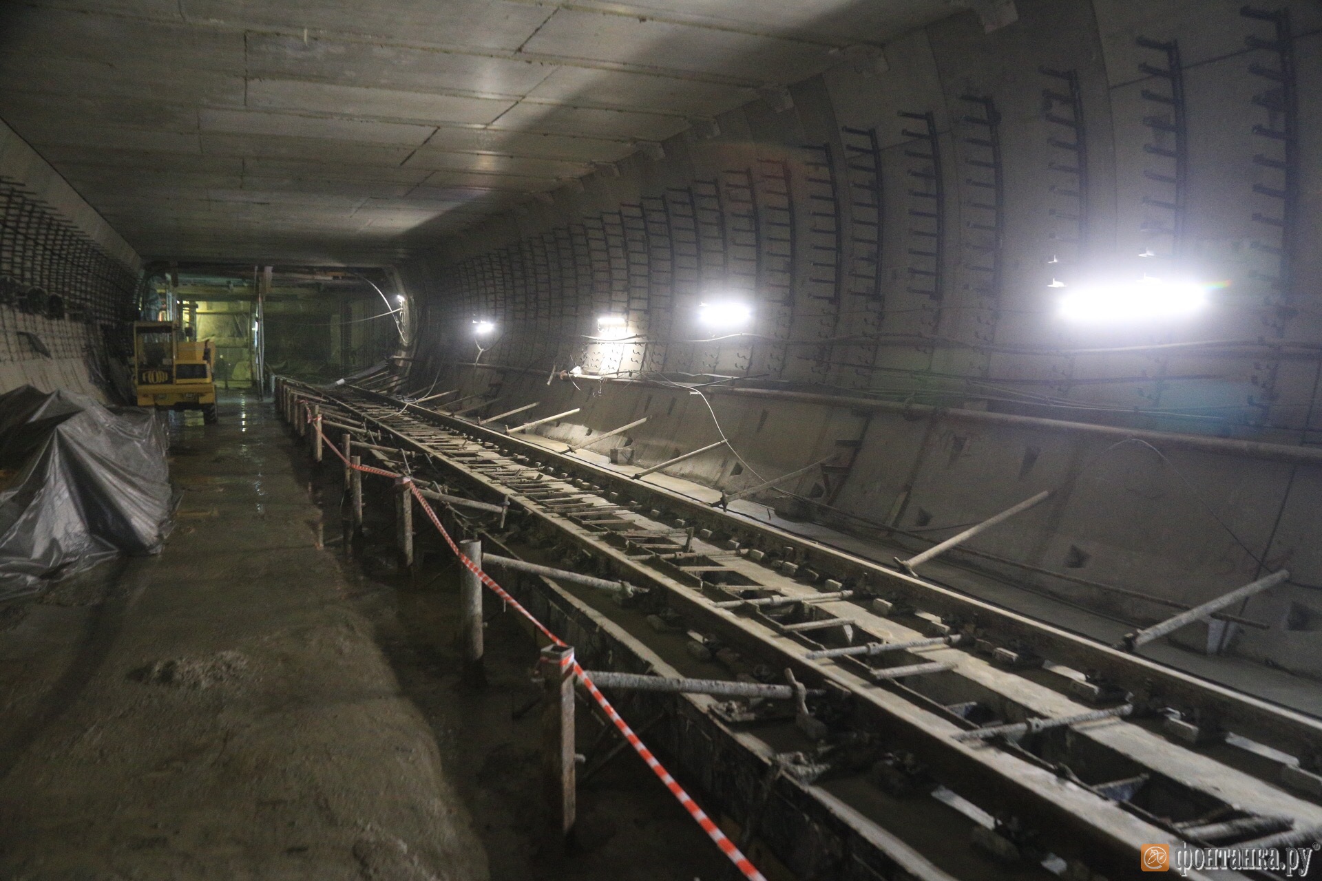 Сейчас рабочие сооружают основание для платформ. Будет двухпутная железная дорога. В тоннеле, проходящим под Финским заливом - это его прорыл проходческий щит «Надежда», уже уложили пять километров рельсов в обе стороны.