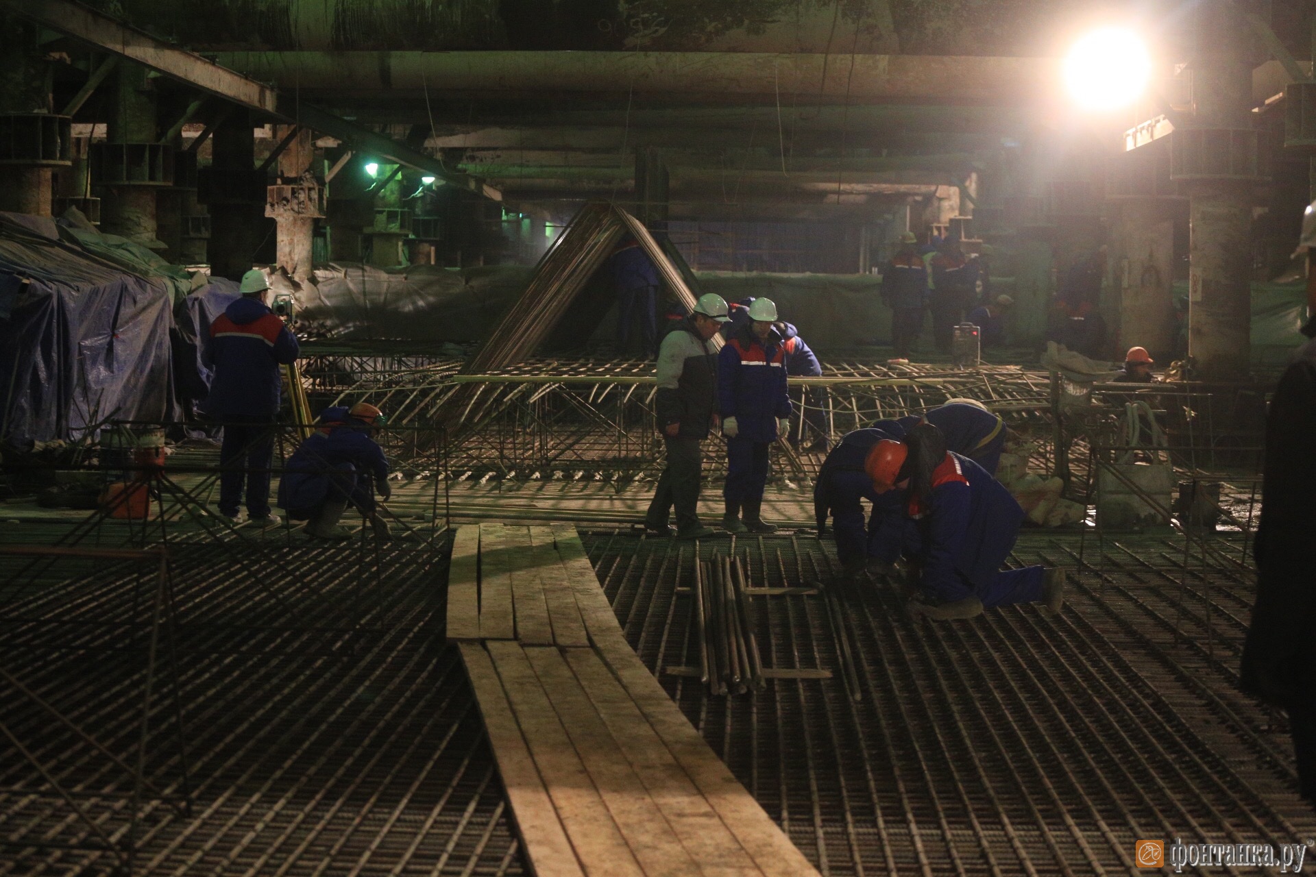 Работы на «Беговой» не прекращаются даже ночью. Благодаря этому отставание в графике удалось сократить с шести месяцев до одного. Но расслабляться рано.