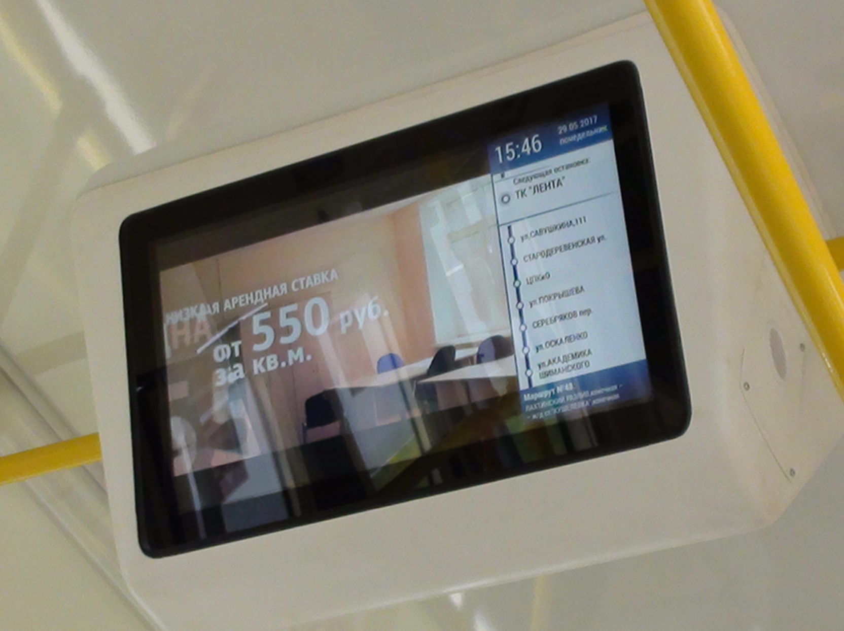 То, о чём вы говорите, уже есть. Но реализовано в трамваях. Справа на мониторе (3/4 монитора занята рекламой). По сути, можно наддверный ЖК-монитор прикрепить, и тогда даже деления не нужны будут. Просто перепрограммировать на нужное количество станций.