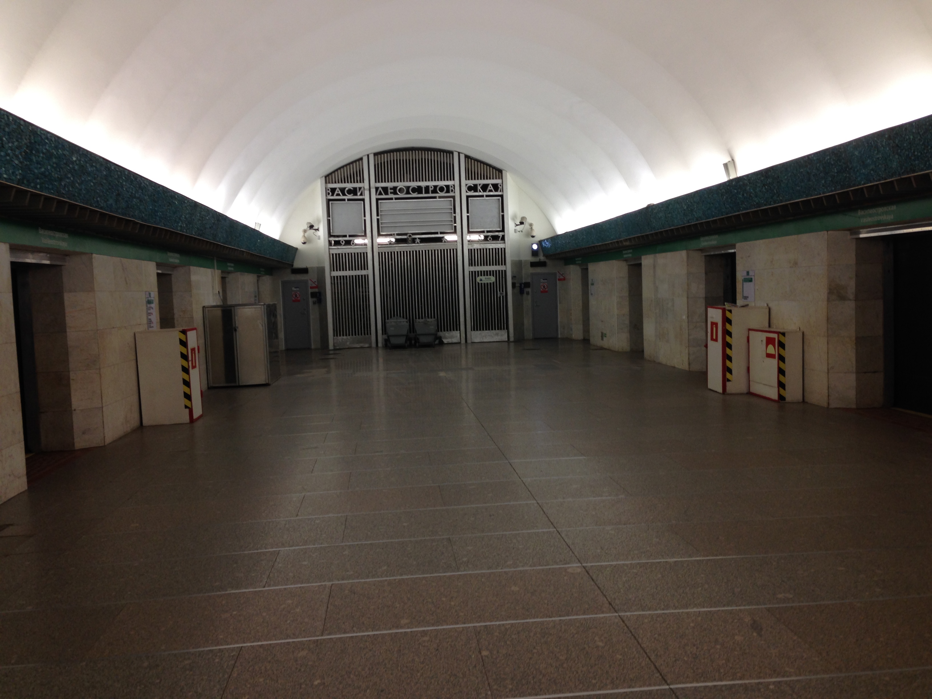 Сейчас ведутся работы по перемещению решетки. На протяжении многих лет за нею находилось находилось технологическое оборудование для обслуживания станции. Оно сокращало длину перрона, и более того, не давало пассажирам выйти из двух дверей первого вагона в сторону «Приморской» и двух дверей последнего вагона в сторону «Гостиного двора». Как утверждает Петербургский метрополитен, так было изначально. Однако современные технологии позволили избавиться от объемного оборудования, и в ближайшее время на «Василеостровской» будут открываться все двери.