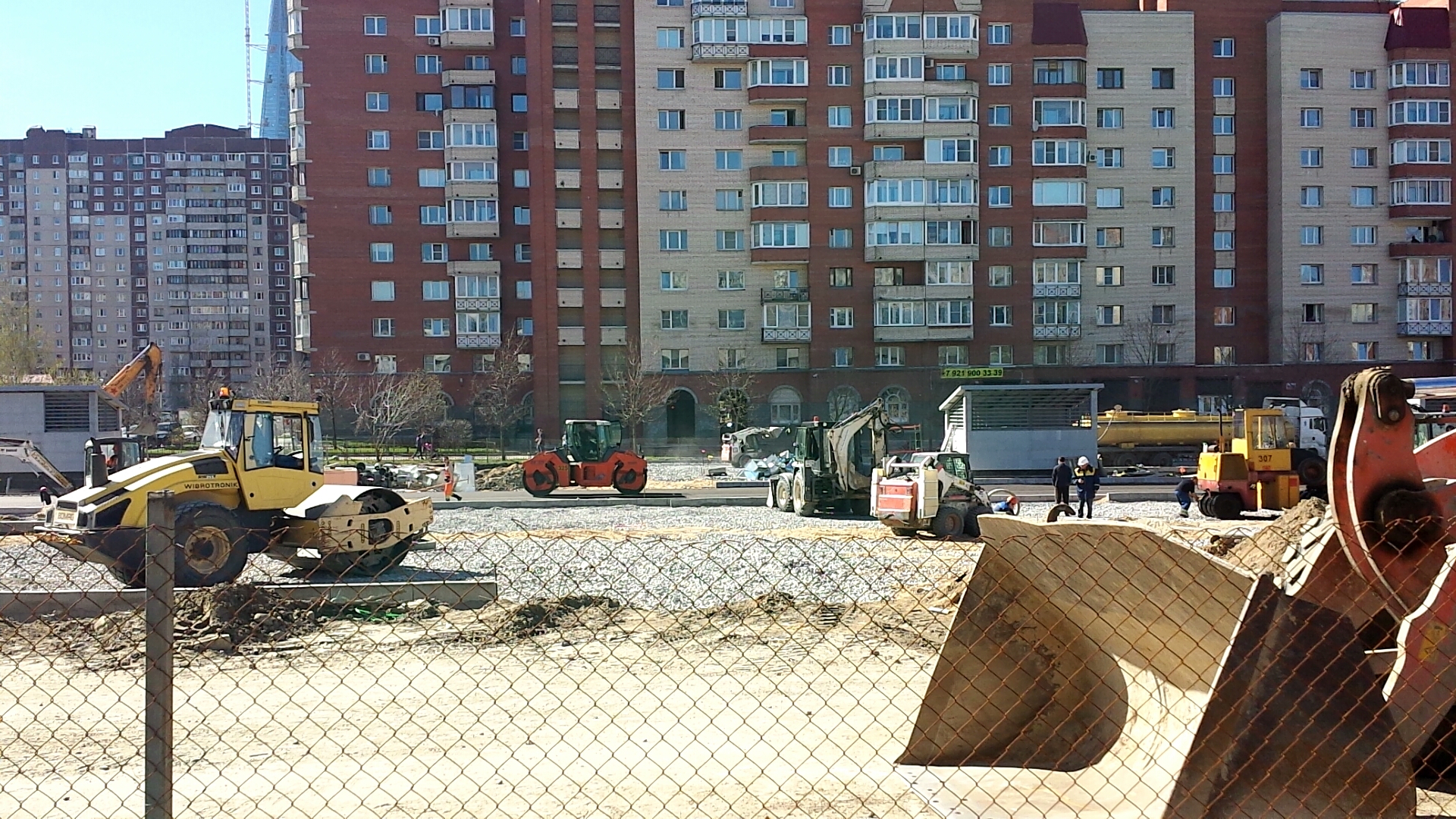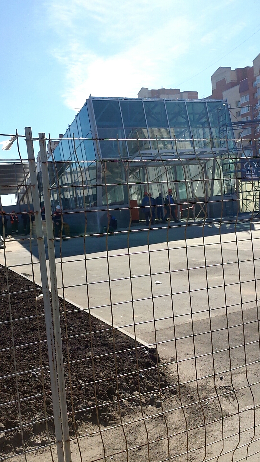Изменения за выходные. Забор из профлиста остался только вдоль ТЦ Атлантик сити, да и то не везде. В остальных местах забор уже заменён на быстродемонтируемый сетчатый. Асфальтирование приблизилось почти вплотную к технологическому проему