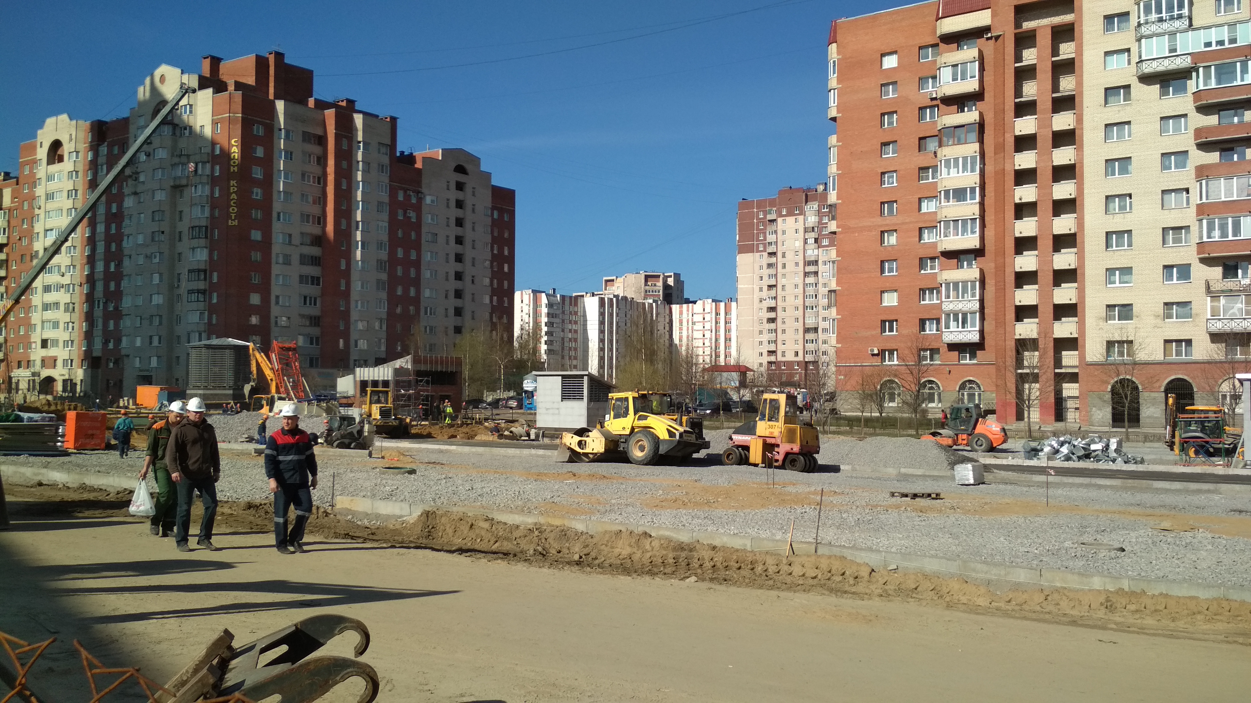 Степень готовности улицы возрастает по мере приближения к павильонам на Савушкина. Сзади еще ведутся какие-то земляные работы.