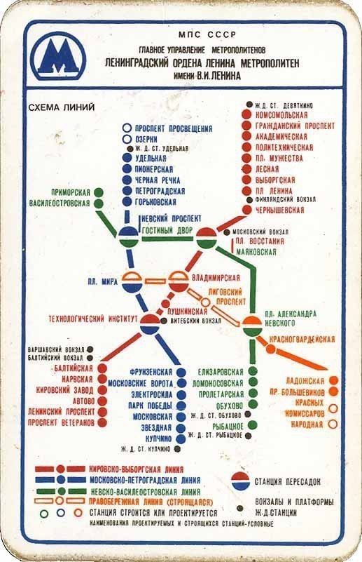 Действительно, во всех своих советских вариациях схема подземки давала пассажиру очень мало информации. Кроме действующих и строящихся станций на ней были обозначены только вокзалы, в отдельных случаях – железнодорожные платформы. И никаких географических особенностей Ленинграда.