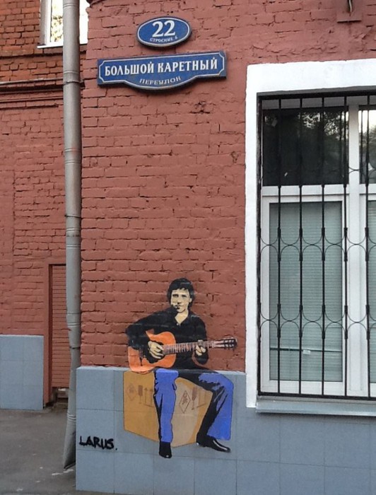 Я бы тихо и про себя радовался граффити Высоцкого. Пожалуй, это единственный человек, лицу (или изображению) которого я был бы рад (при условии качественного исполнения). Но в Питере ни разу почему-то не видел его изображения в виде граффити. В Москве есть граффити на Большом Каретном. Очень кстати и клёво смотрится. Учитывая что такая песня есть и её содержание :)