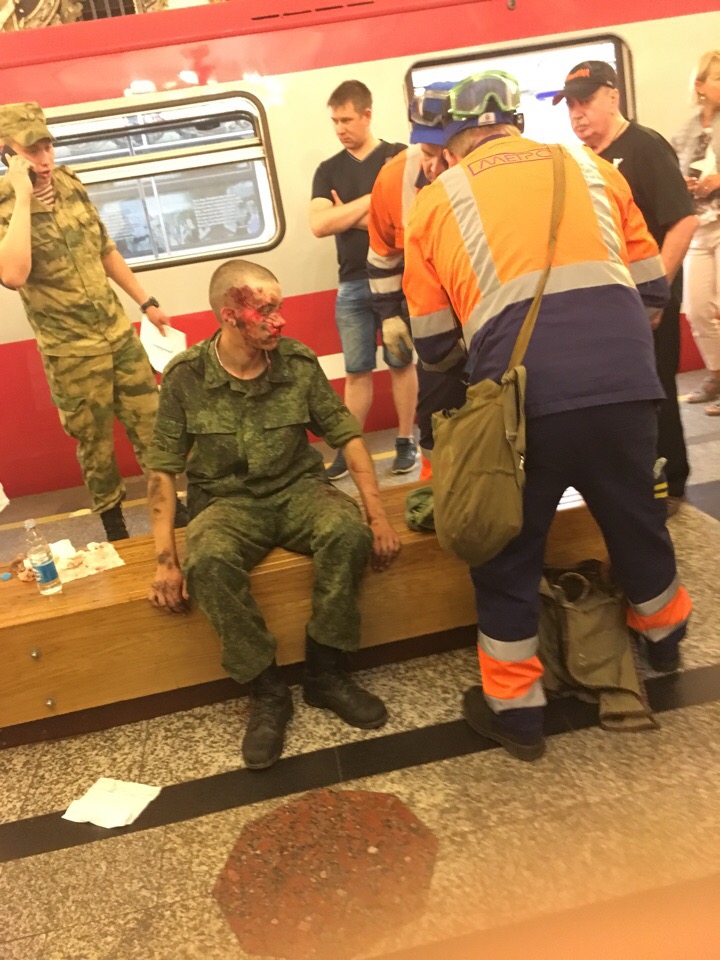 На станции "Автово" солдат срочник бросился под поезд метро. Машинист поезда использовал экстренное торможение и солдат остался жив.