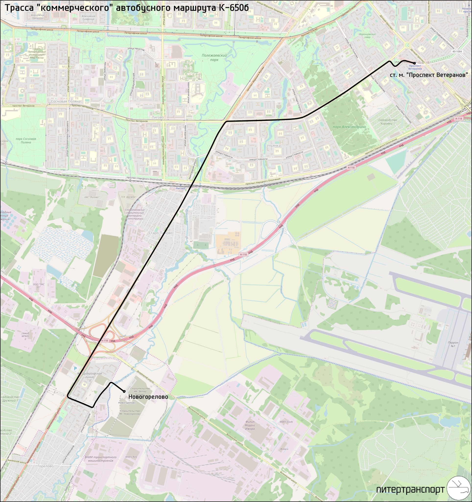 С 14 февраля начал работу новый "коммерческий" маршрут К-650б, связавший станцию метро "Проспект Ветеранов" с новостройками Ломоносовского района Ленинградской области, расположенными неподалёку от Волхонского шоссе - ЖК "Ветер Перемен" и ЖК "Новогорелово". Конкурс на право обслуживания данного направления в течение ближайших 5 лет областное Управление по транспорту объявило ещё 10 января, но в итоге своё желание изъявила лишь одна компания.