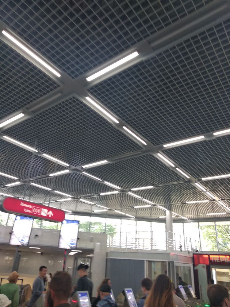 Изначально потолок в вестибюле был как на заводе, затем - как в офисе, теперь же он как в торговом центре: