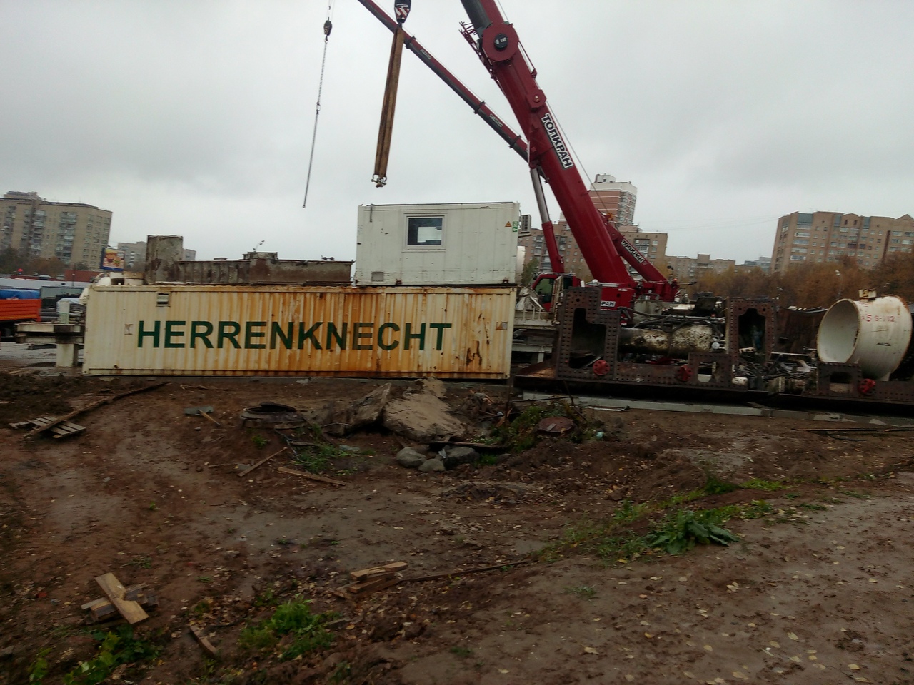 разобранном состоянии на стартовом котловане на Туристской улице, в Москве. После окончания проходки тоннелей на участке