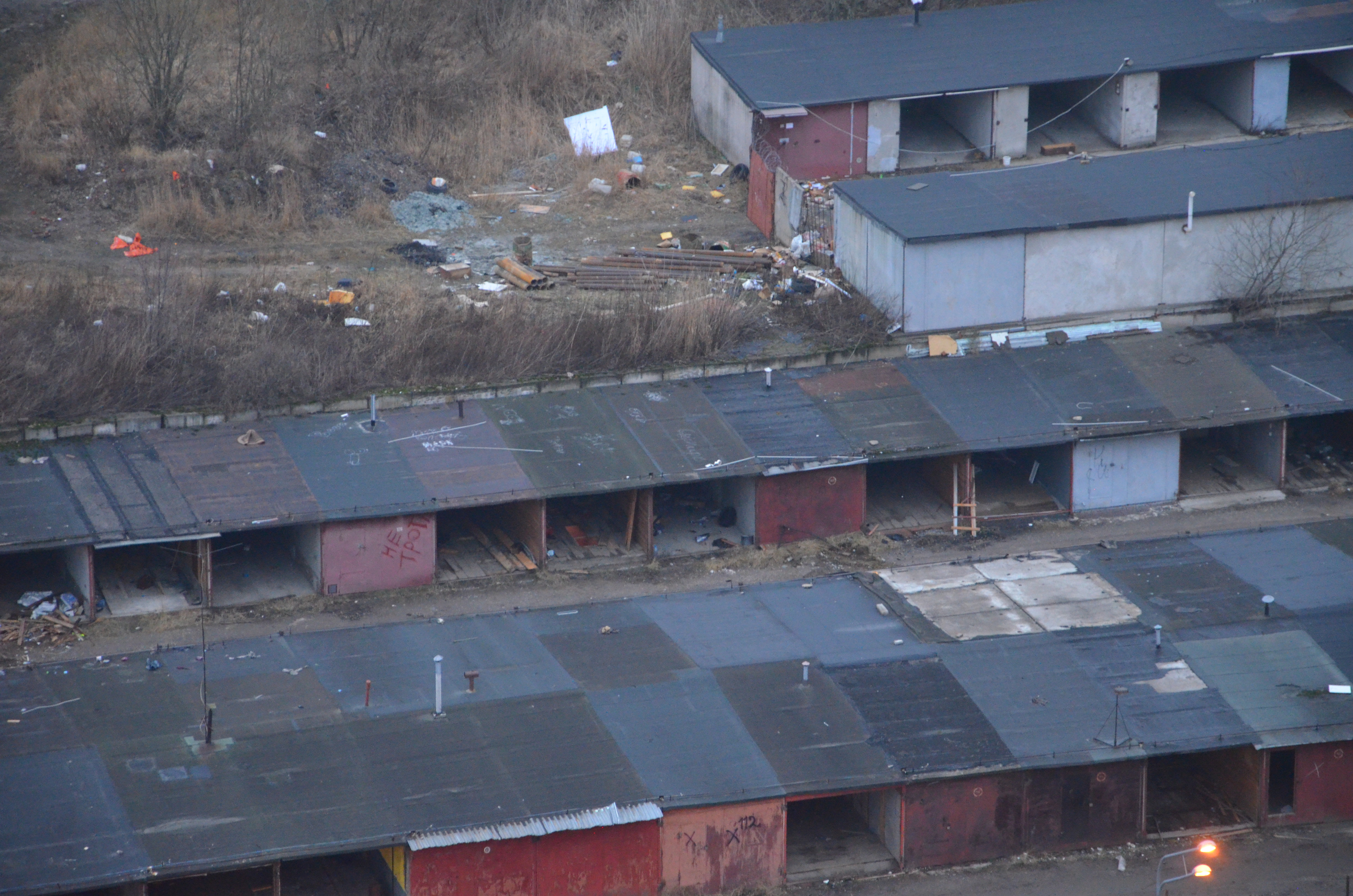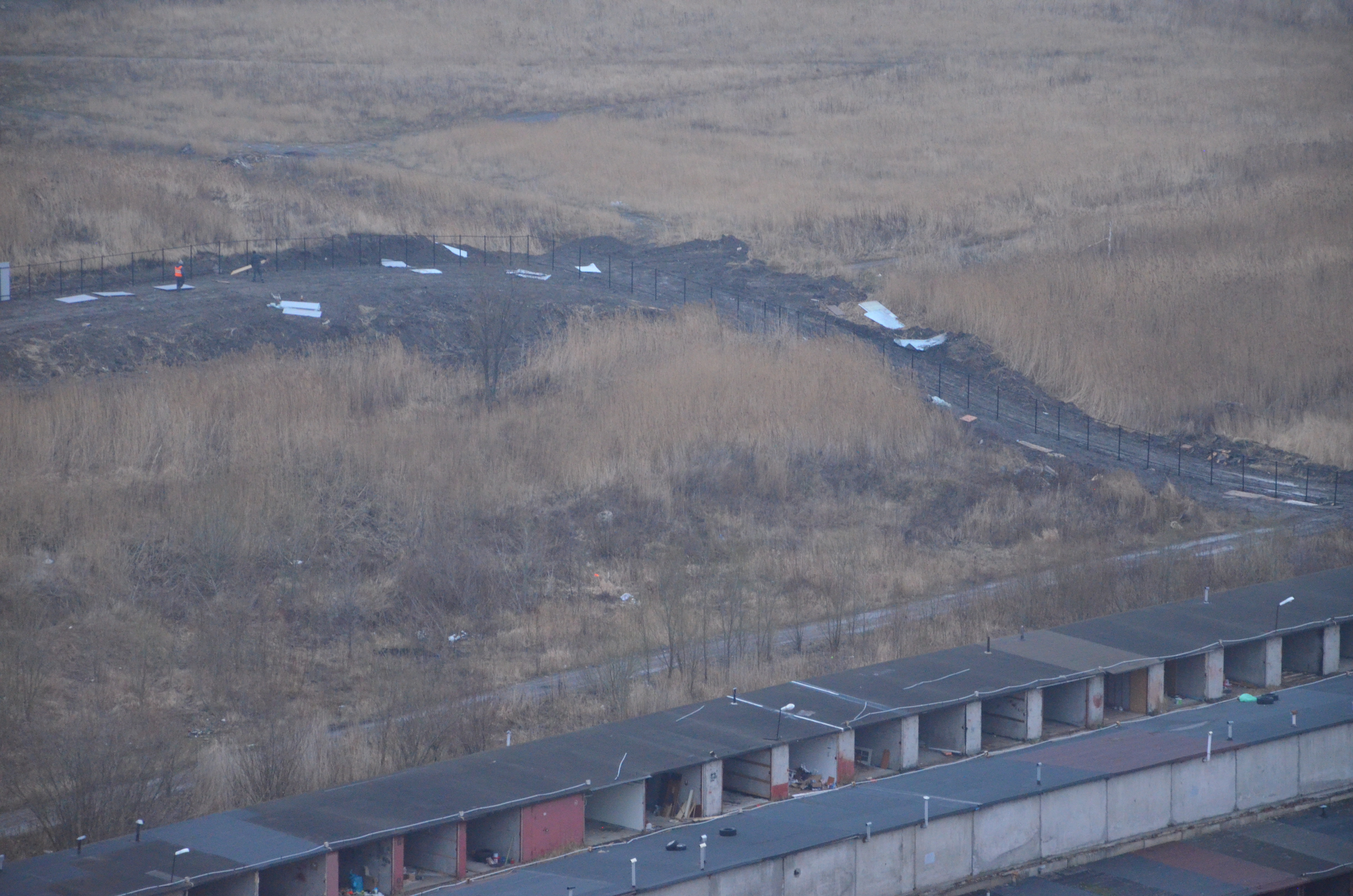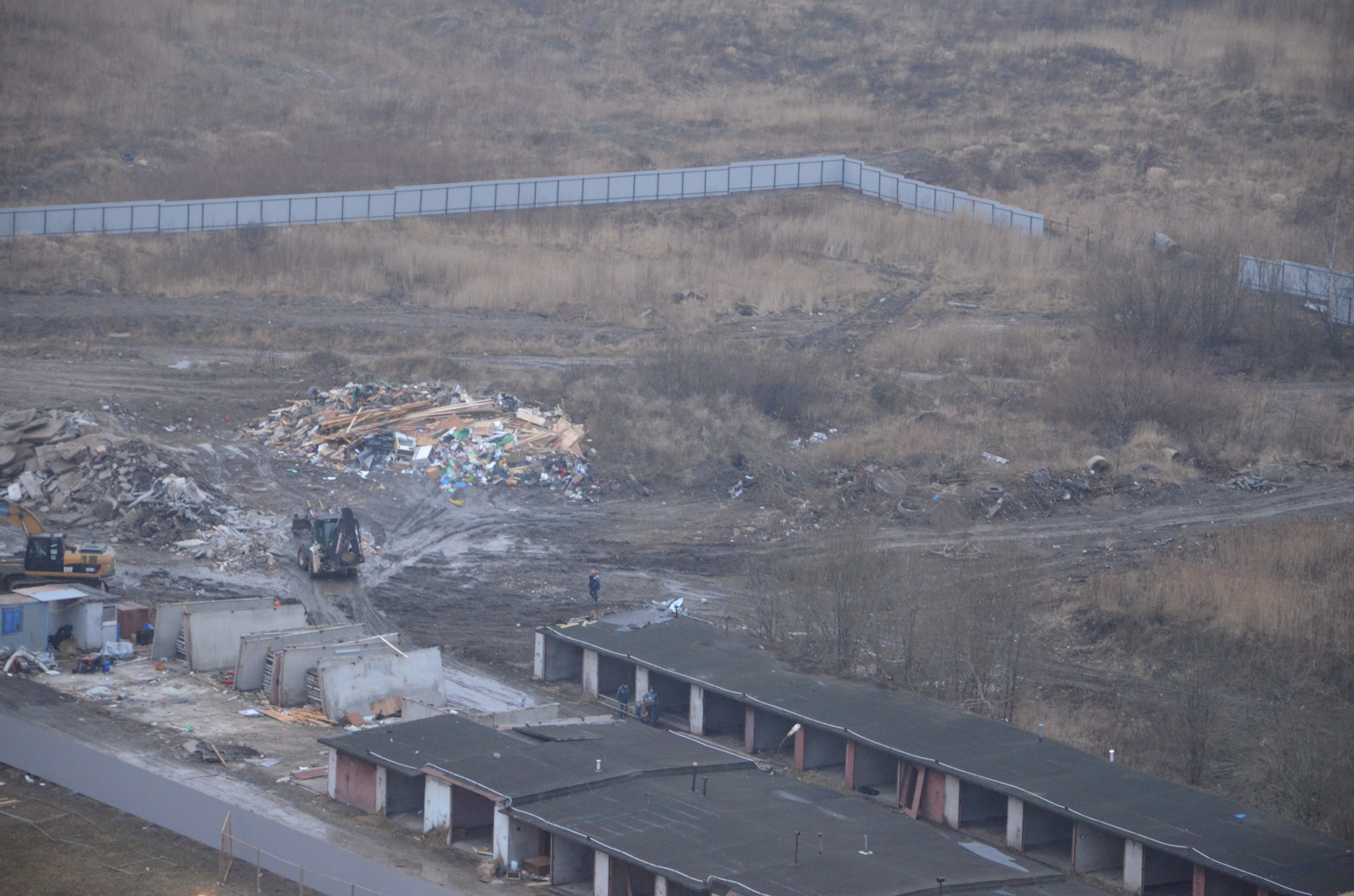 Разбирают гаражи, делают ограждение, кладут плиты для временной дороги.