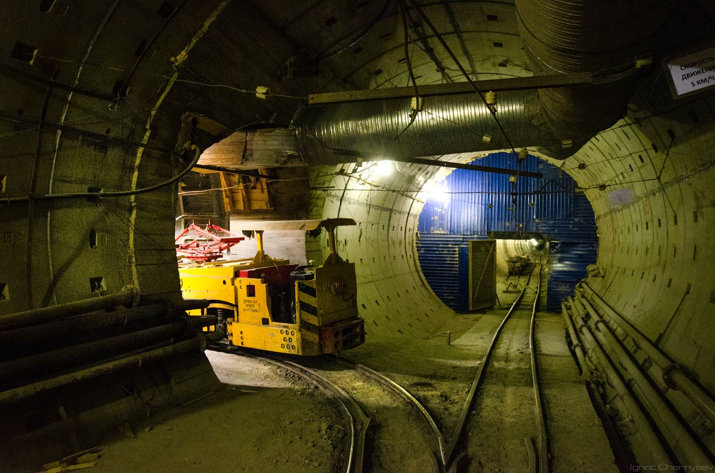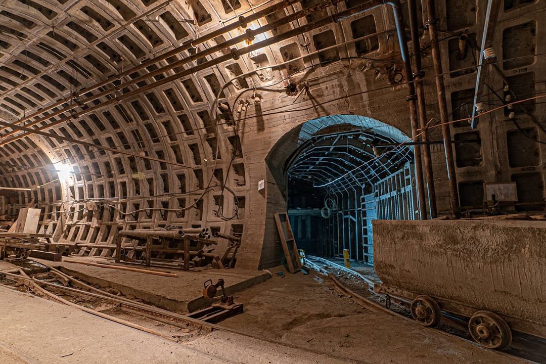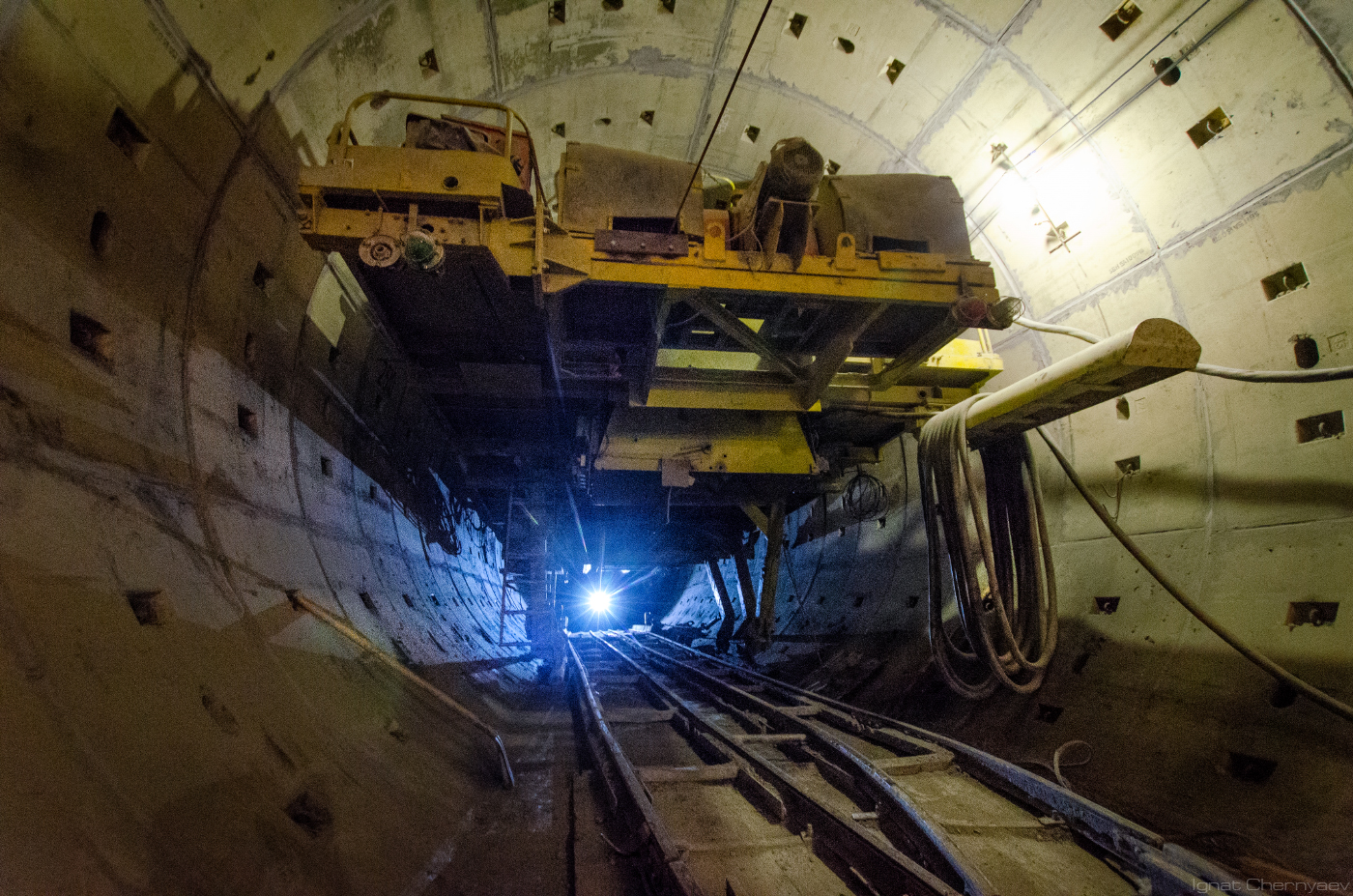 Выработки у шахт 843 и 842 и построенный перегонный тоннель между Юго-Западной и Путиловской.