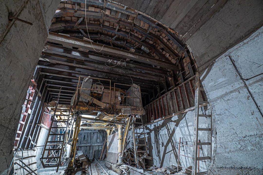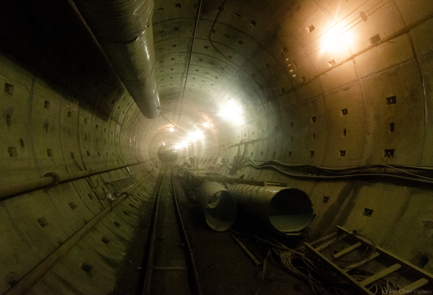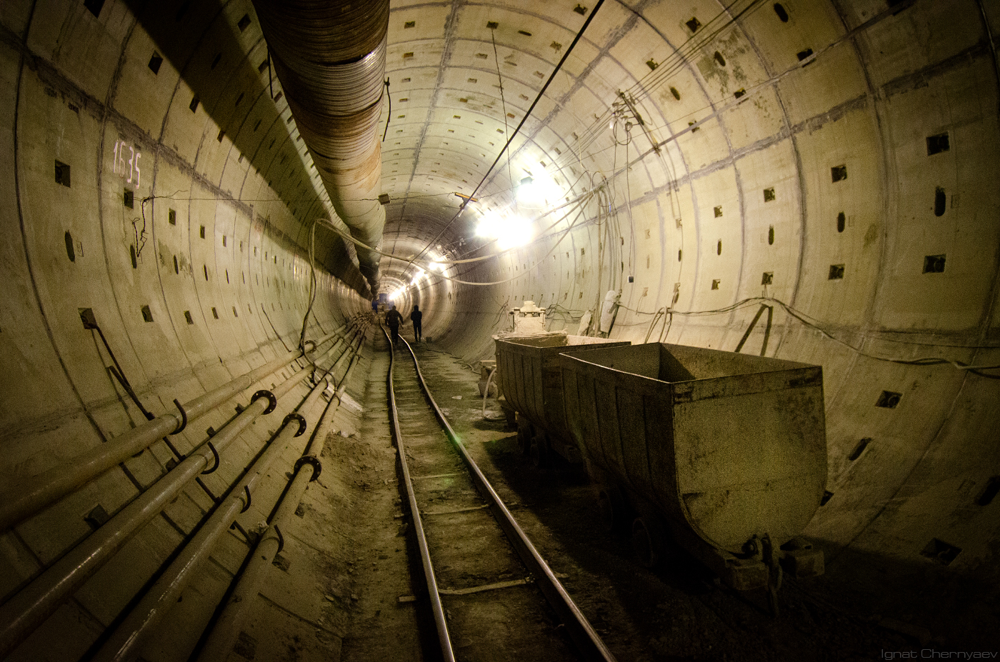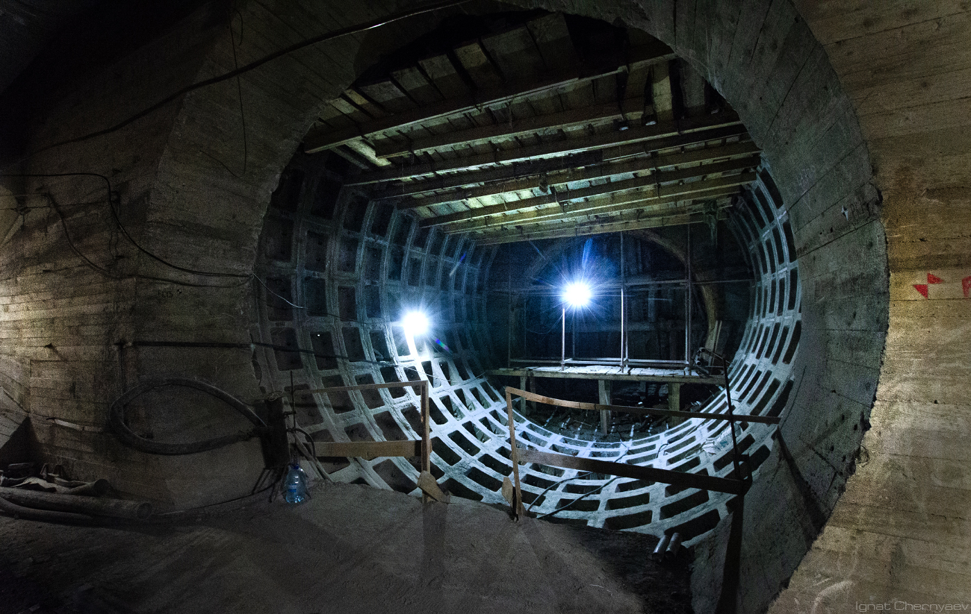Выработки у шахт 843 и 842 и построенный перегонный тоннель между Юго-Западной и Путиловской.