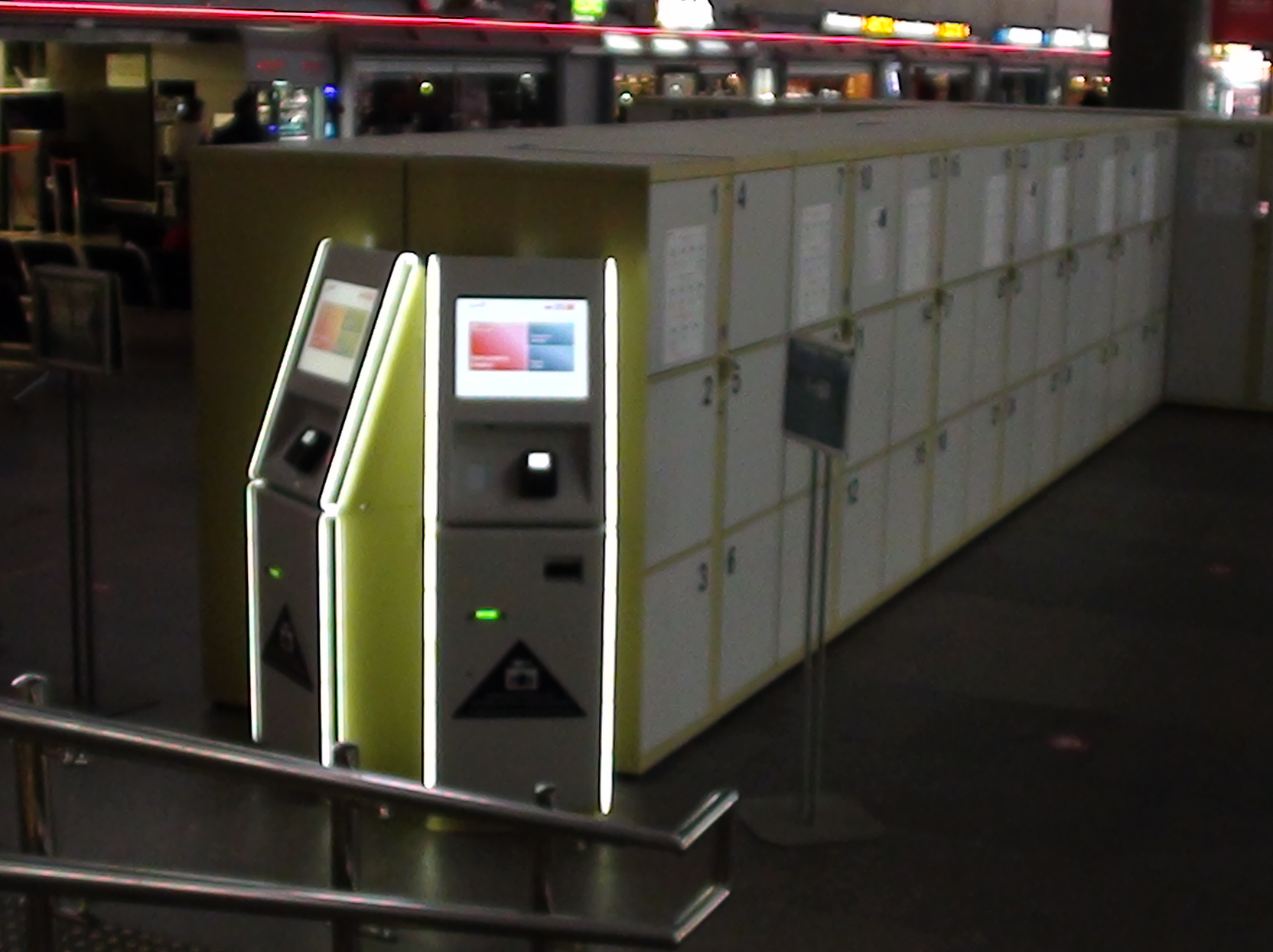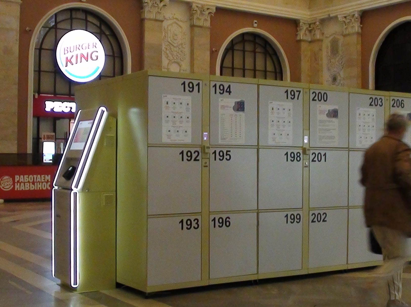 А это, кажется, теперь будет на всех вокзалах в Санкт-Петербурге: то же самое я и на Финляндском, и Витебском видел. На Ладожском камеры хранения "более-менее аккуратно" (всяко цивильнее) запрятаны на балкон в световом зале.