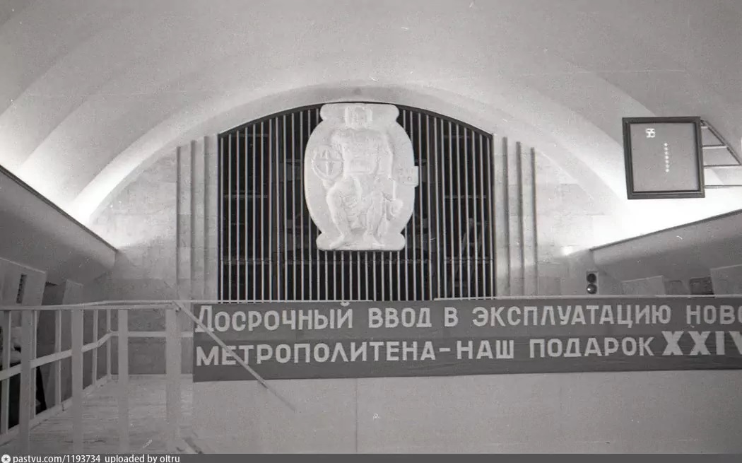 Ломоносовская декабрь 1970. Торец станции с известным барельефом